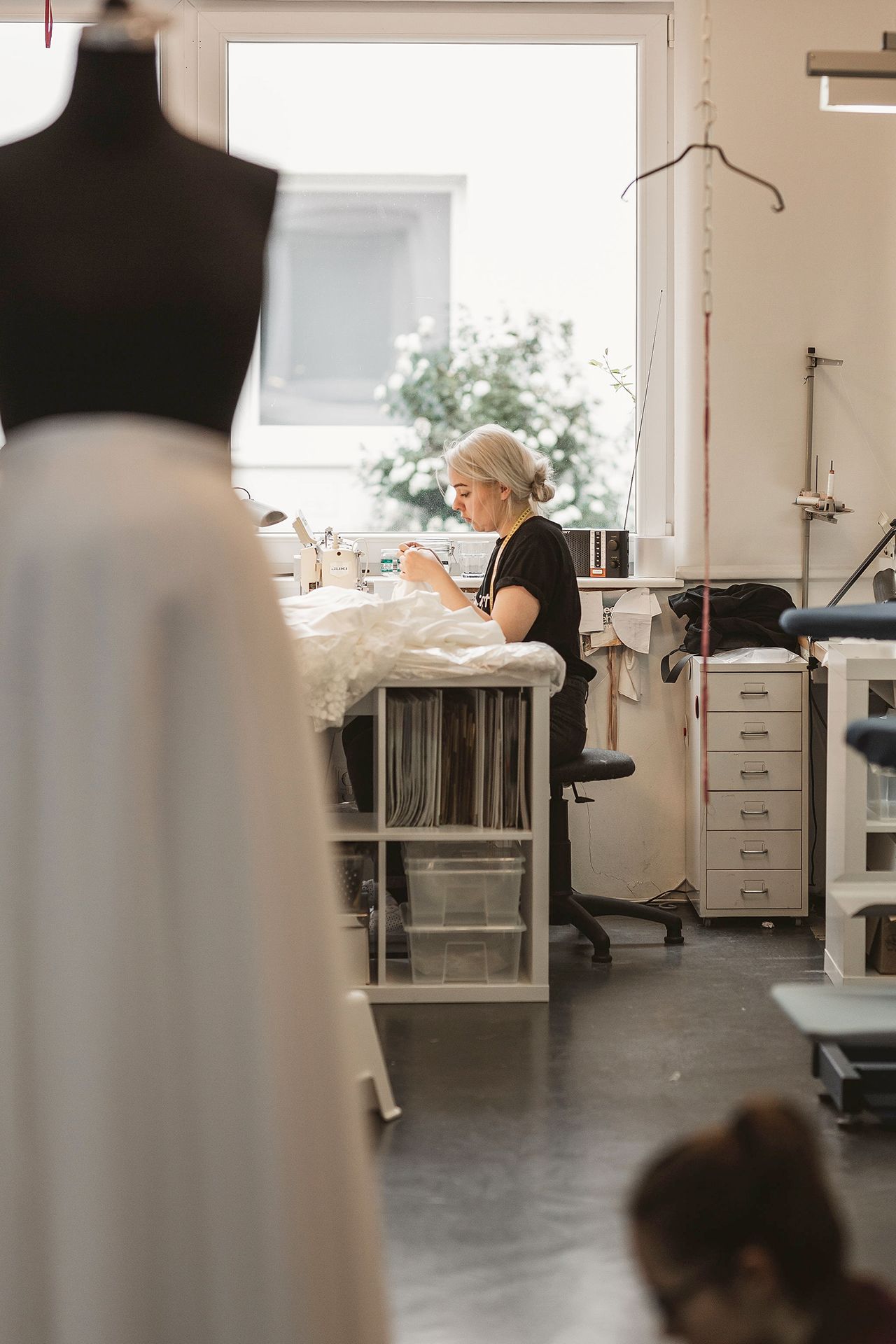 Außerdem unsere kreativen MitarbeiterInnen, die Euch täglich mit informativem Content auf verschiedenen Kanälen versorgen, neue Designs entwickeln oder für die reibungslose Abwicklung Eurer Bestellung sorgen. Und last but not least unsere fleissigen Schneiderleins, die in der hauseigenen Werkstatt unsere schönen Brautmode-Kreationen zum Leben erwecken. Danke für Euren unermüdlichen Einsatz!