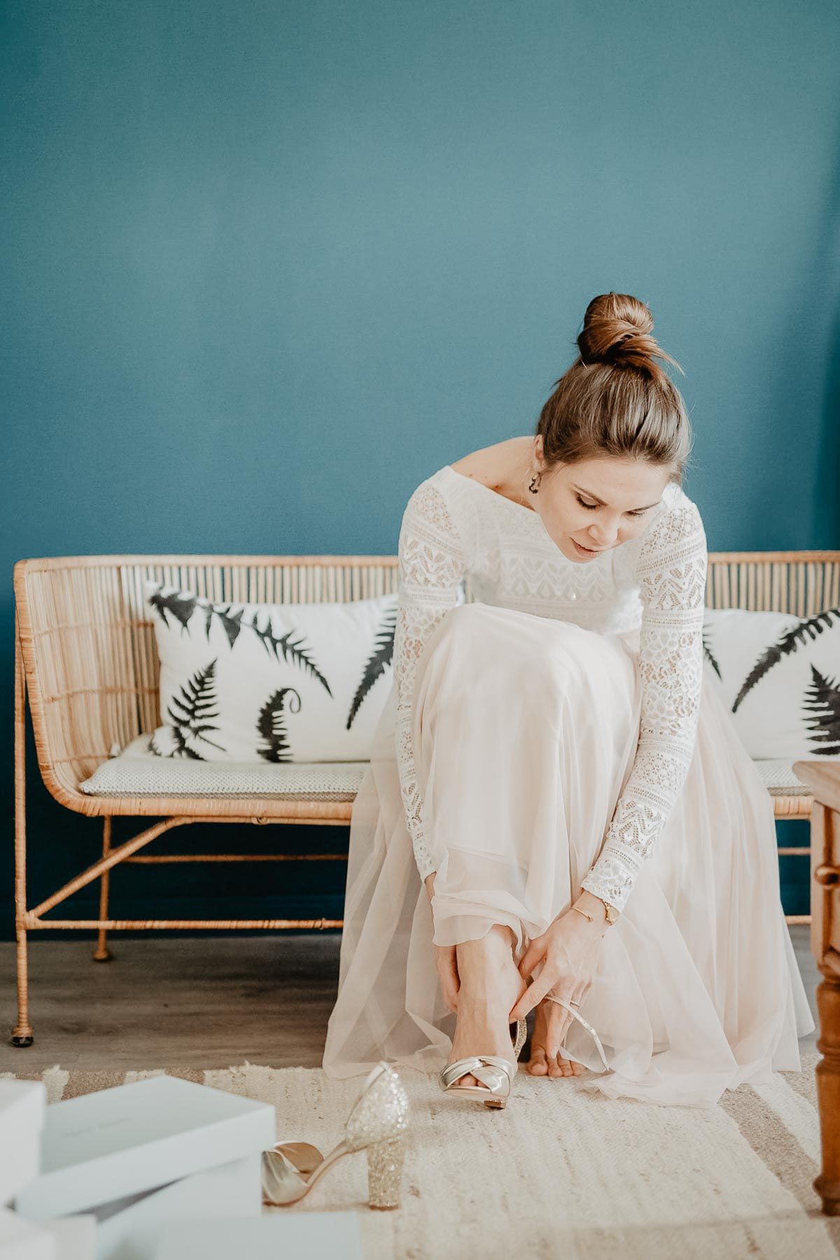- Schuhe mit ähnlicher Absatzhöhe: Um die richtige Länge besser beurteilen zu können, nimm Schuhe mit, in denen du sicher stehst und die dem Modell, das du an deiner Hochzeit tragen wirst, am nächsten kommen. Hast du das finale Paar Brautschuhe bereits gefunden, bring dies direkt zu deinem ersten Beratungstermin mit.
