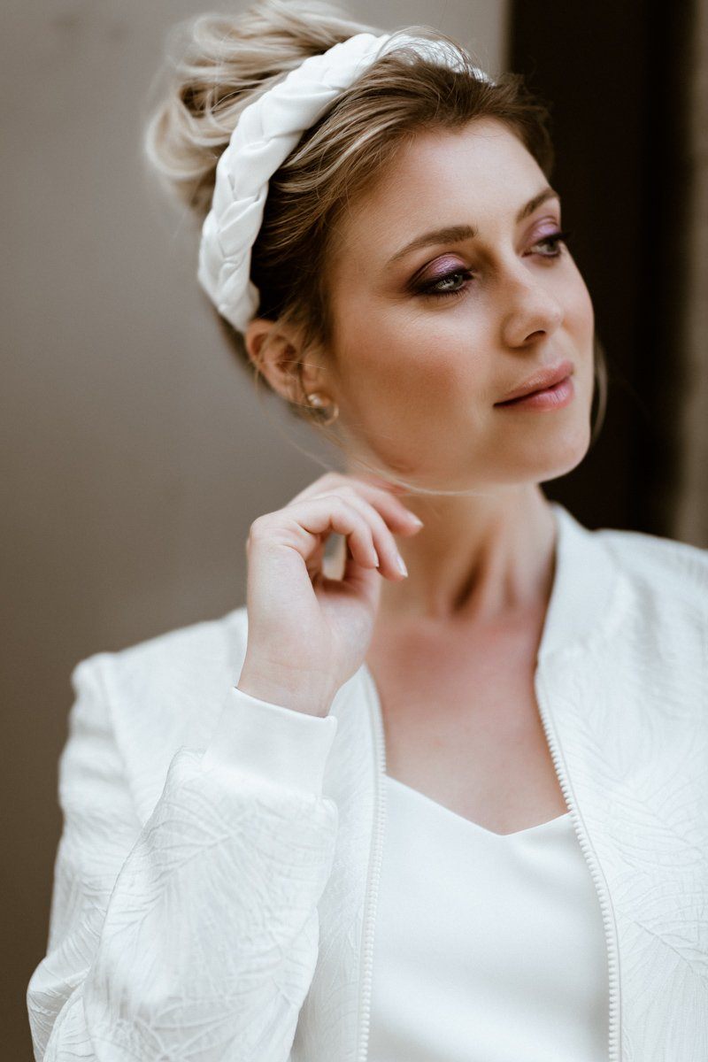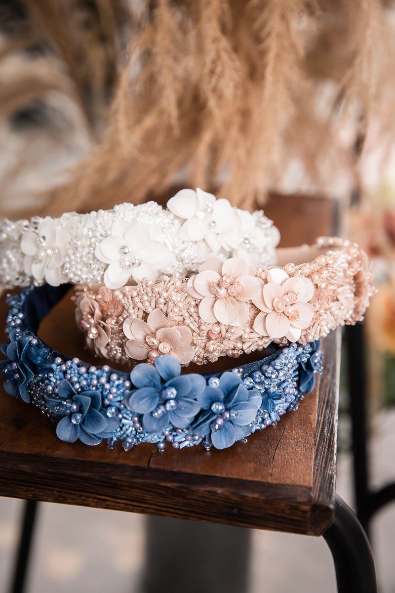 Die Farbe und auch die Verzierungen des Diadems oder Haarreifs sollten natürlich mit deinem Brautkleid harmonieren. Ob du dich für Perlen, Kristalle, Blumen oder andere Details entscheidest, das Accessoire sollte deinen persönlichen Stil widerspiegeln und dein Hochzeitsoutfit stilvoll wie stimmig ergänzen.