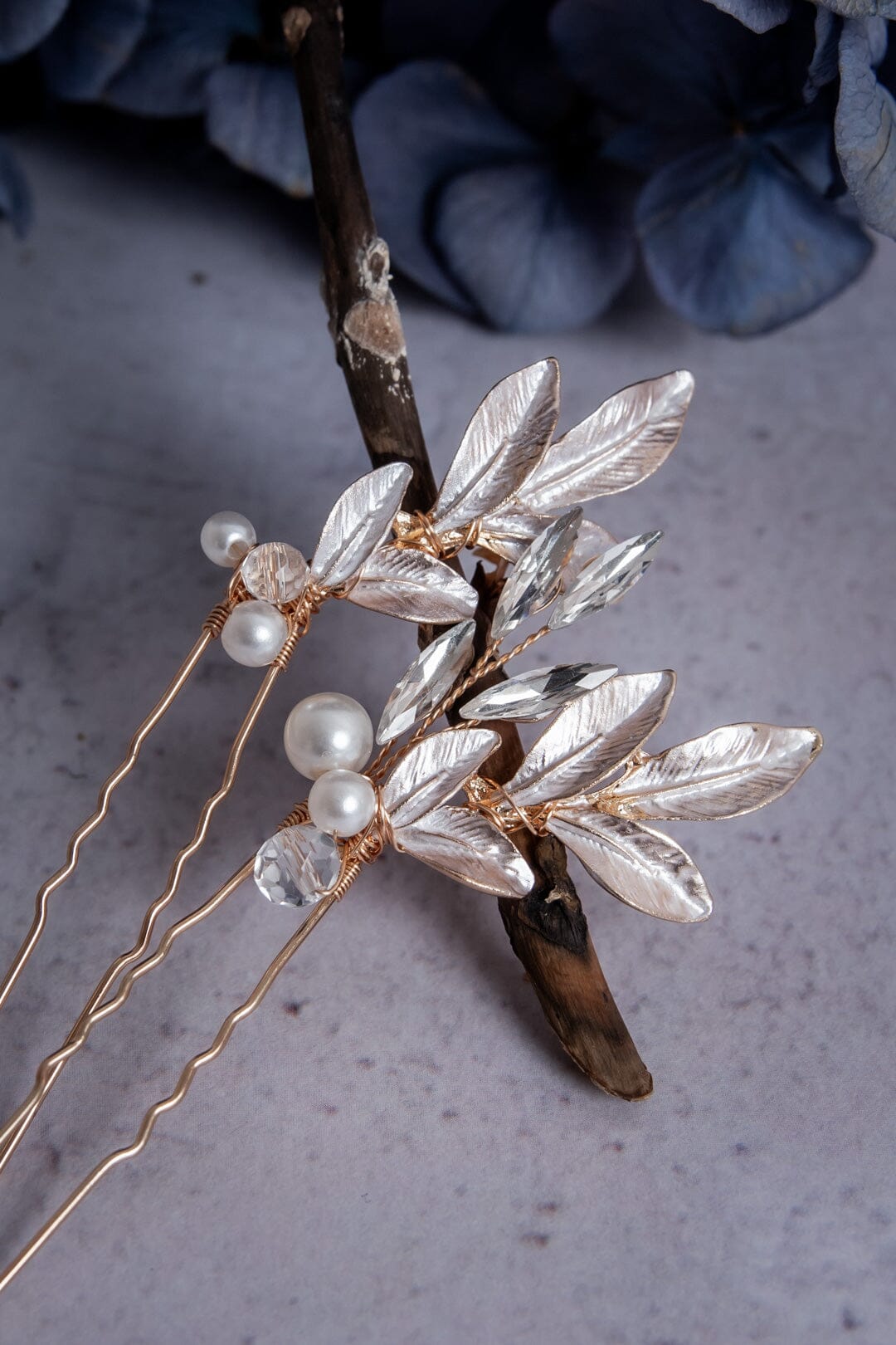 Diese Haarnadeln sind mit künstlichen oder echten Blumen verziert und bringen eine natürliche und frische Note. Es gibt zum Beispiel Haarnadeln mit kleinen, weißen Blüten, die in eine lockere Hochsteckfrisur eingefügt werden und für einen romantischen und natürlichen Look sorgen. Genauso gibt es Haarnadeln mit bunten Wildblumen, die perfekt für eine Garten- oder Outdoor-Hochzeit geeignet sind und dem Look einen fröhlichen und lebendigen Akzent verleihen. Sie passen hervorragend zu romantischen oder Boho-inspirierten Kleidern, besonders wenn das Kleid florale Details aufweist. - Vintage-Haarnadeln