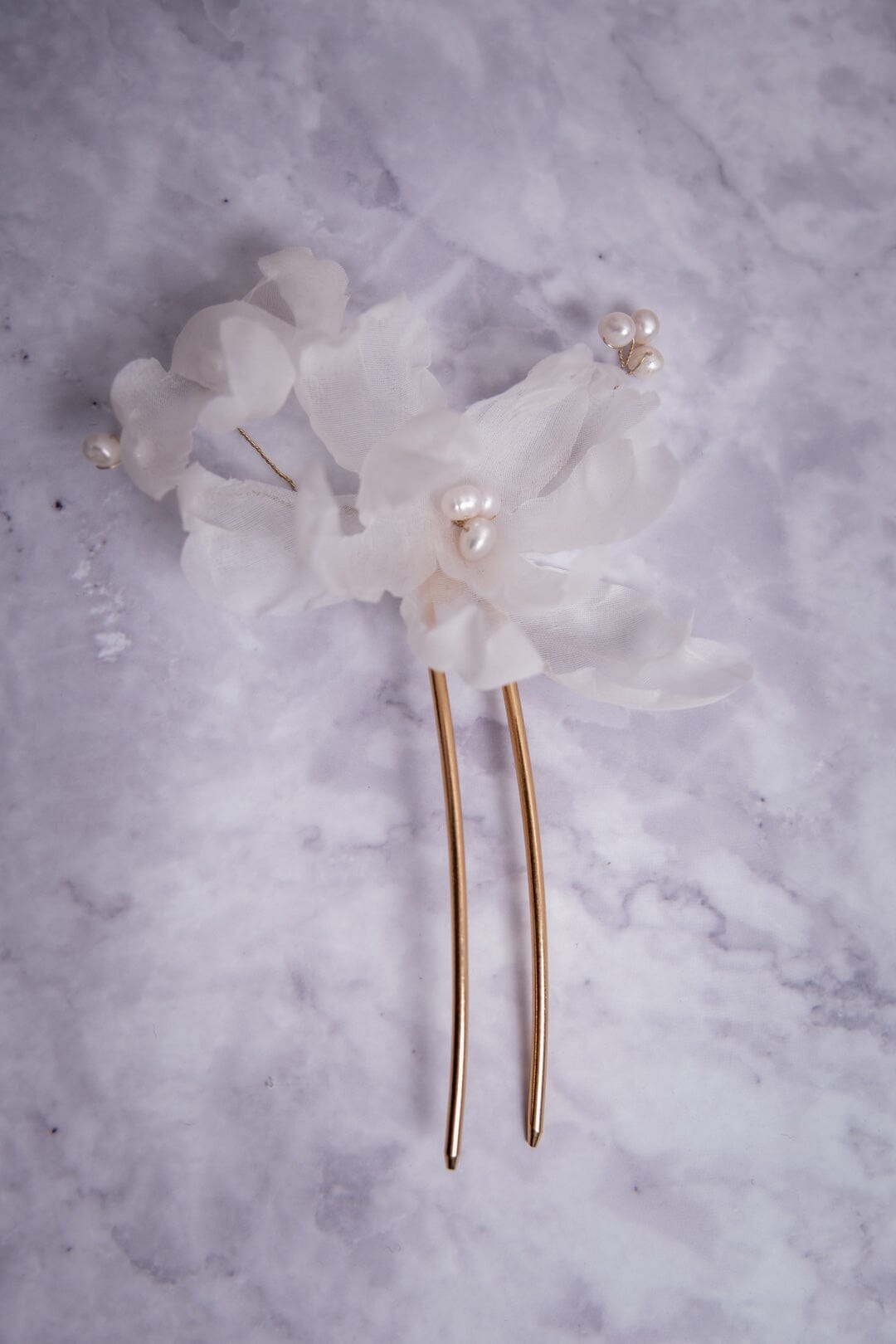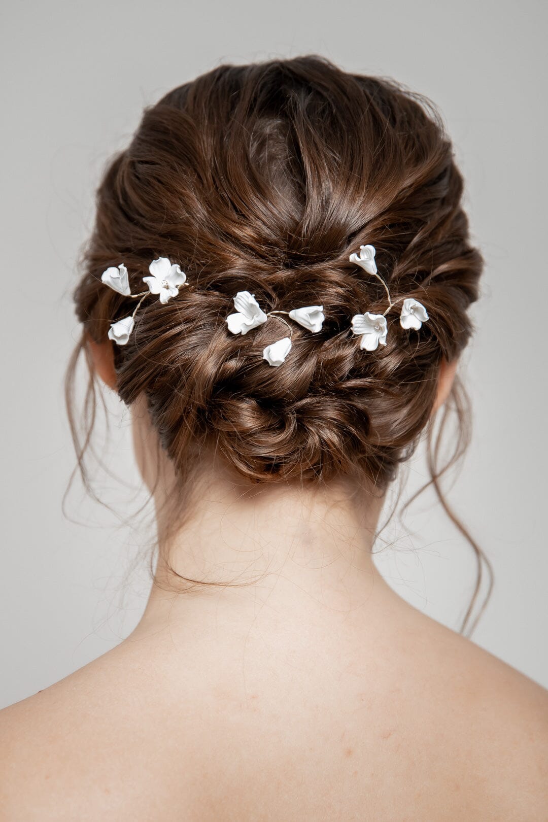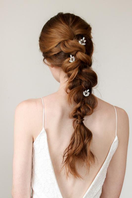 Braut Haarnadeln, verziert mit künstlichen oder echten Blumen passen zu romantischen oder boho-inspirierten Hochsteckfrisuren, zum Beispiel bei locker gesteckten Hochsteckfrisuren mit geflochtenen Elementen.