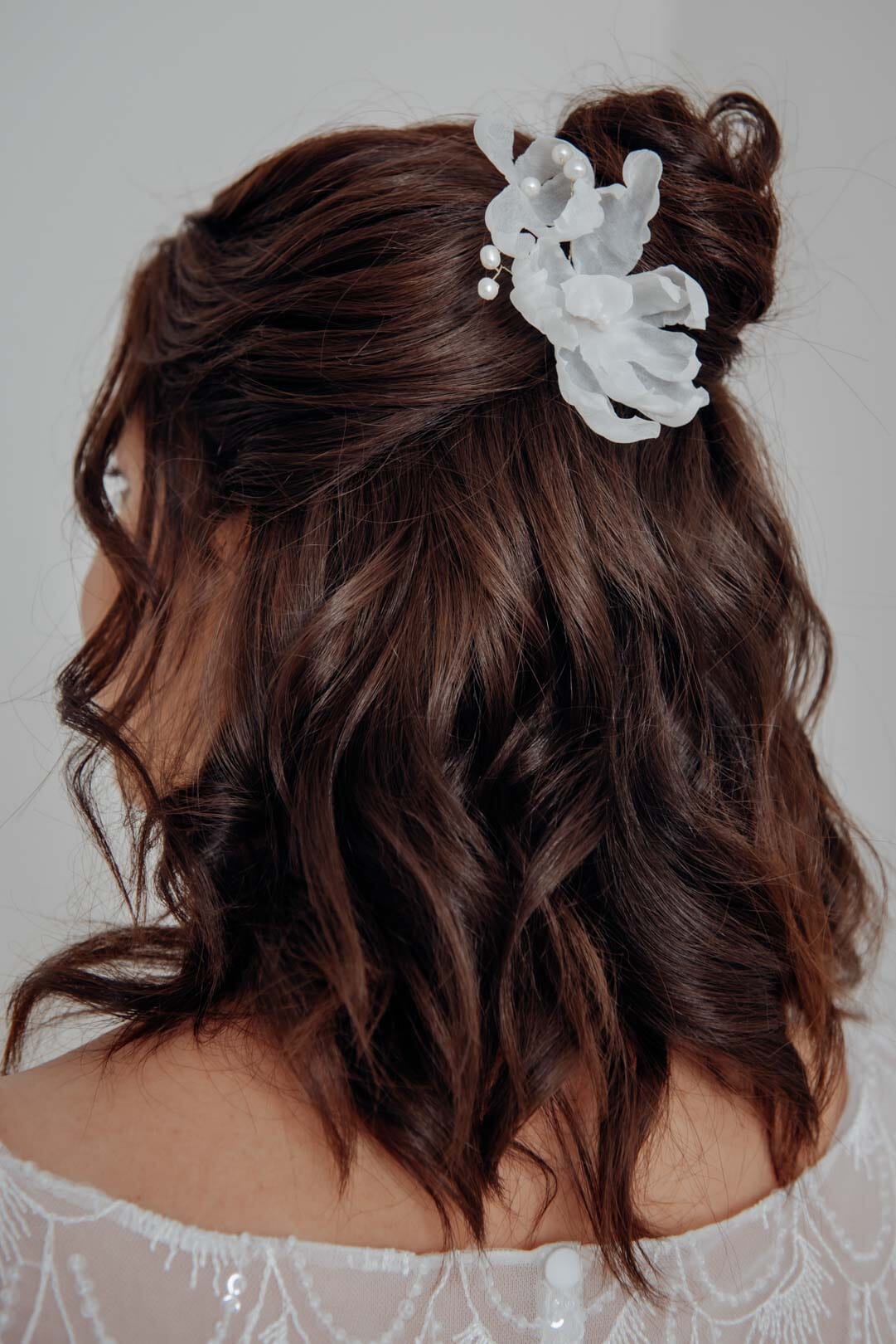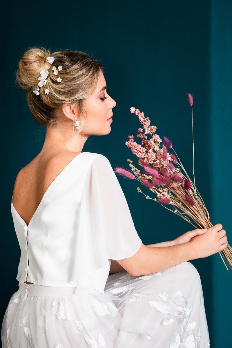 - Stil und Persönlichkeit: Die Wahl der Haaraccessoires spiegelt oft den persönlichen Stil und Geschmack der Braut wider. Von klassischen Perlen und funkelnden Kristallen bis hin zu natürlichen Blumen und Vintage-Stücken – die Accessoires geben dir die Möglichkeit, deine Individualität und einen einzigartigen Stil zum Ausdruck zu bringen.
