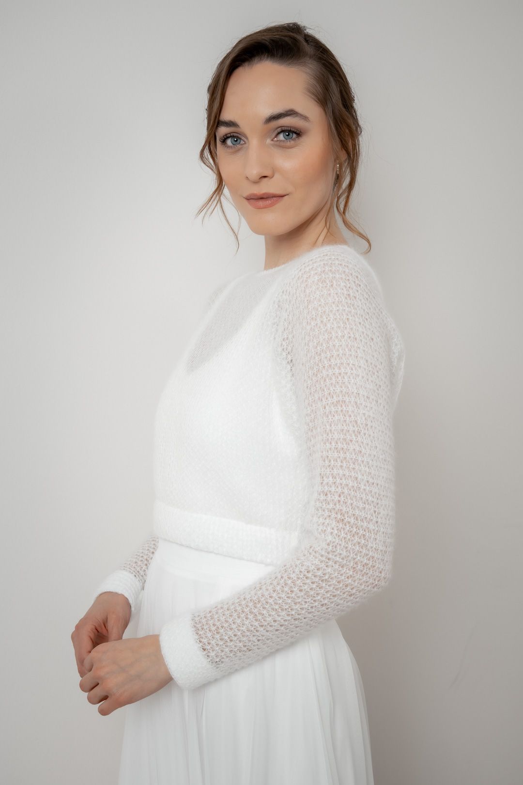 Ein Braut Pullover ist ein vielseitiges und praktisches Accessoire, das deinem Hochzeitsoutfit das gewisse Etwas verleiht. Mit seinen verschiedenen Formen und Materialien und vielseitigen Tragemöglichkeiten ist der Strick Topper eine wunderbare Ergänzung zu jedem Brautkleid.