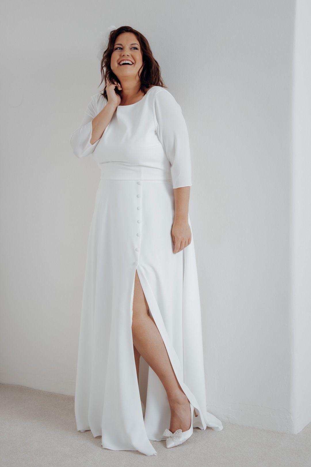 Plus Size Braut Rock mit Schlitz und Zierknöpfen – Eira noni Curvy