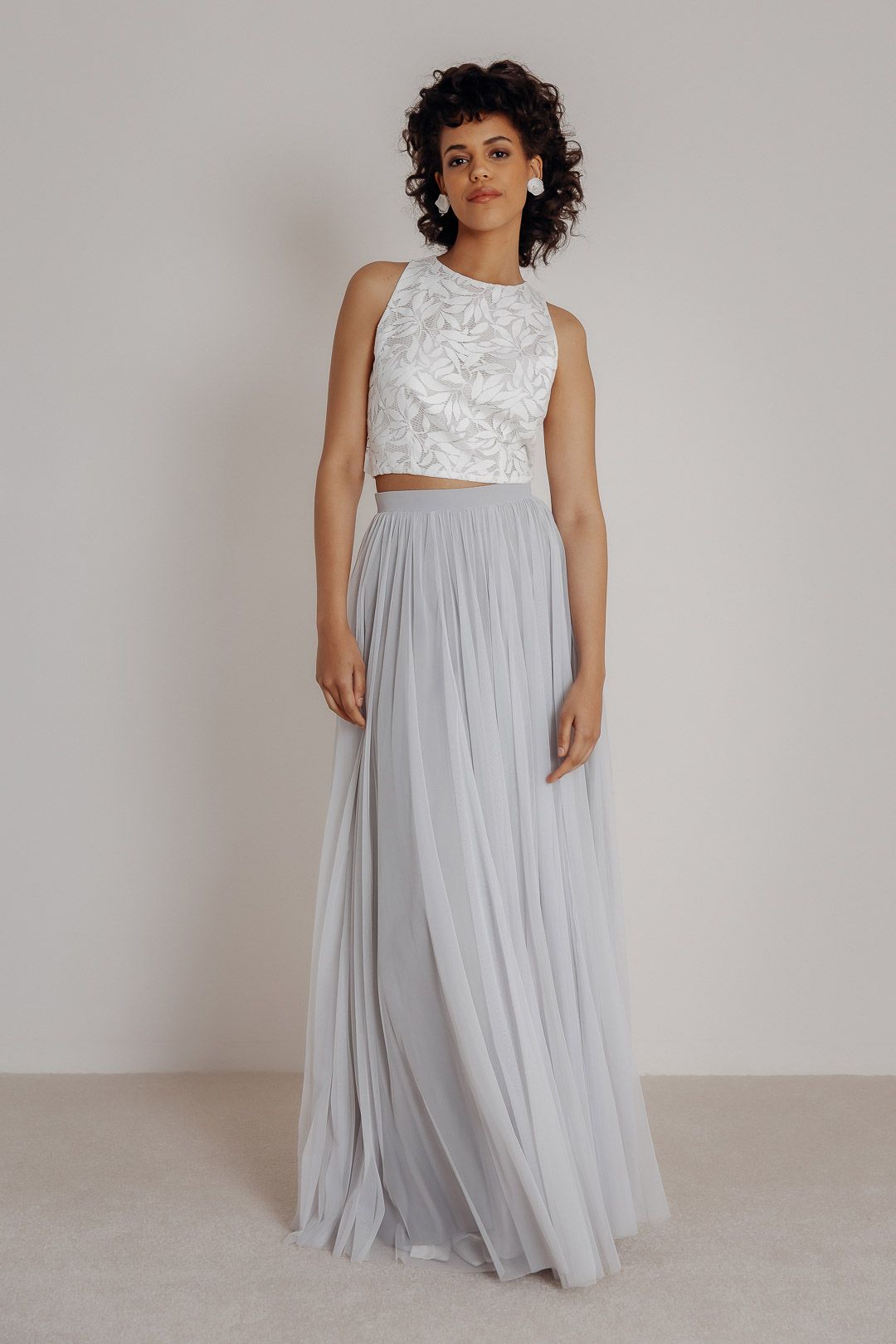 Tüllrock in Grau, fließender Softtüll - Maris mit Mailenn-Spitzentop