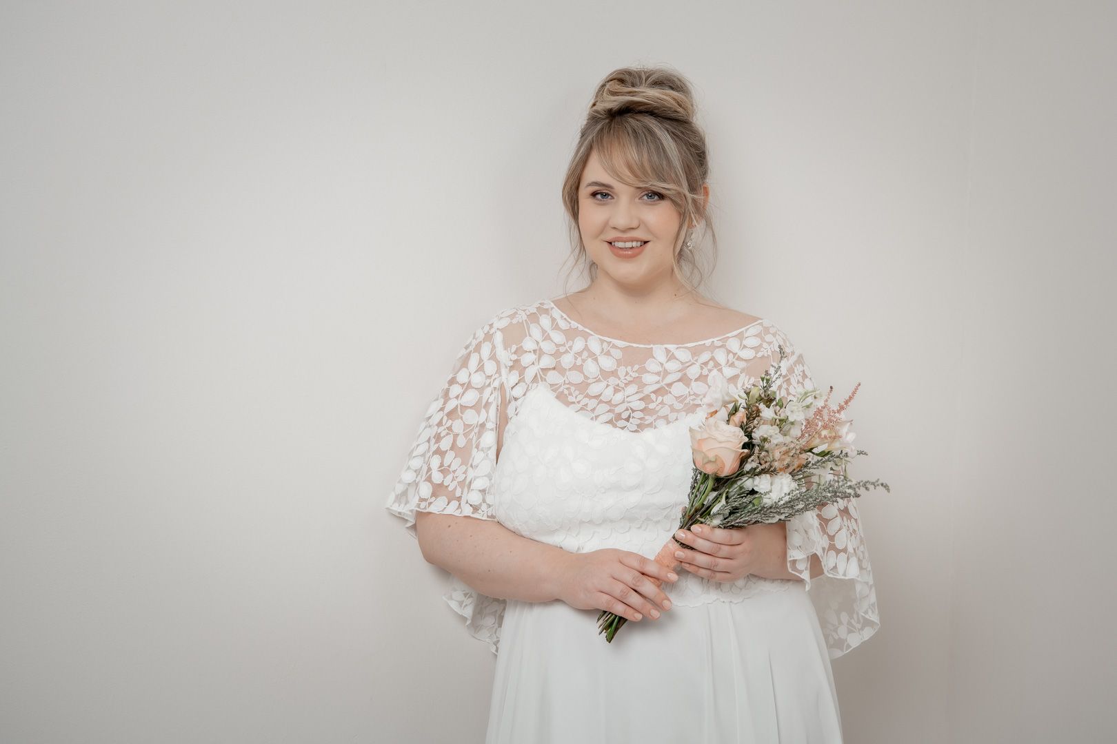 Braut Top aus Botanikspitze mit weiten Flügelärmeln – Lucy noni Curvy