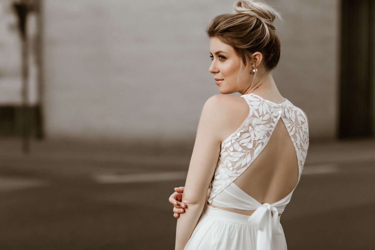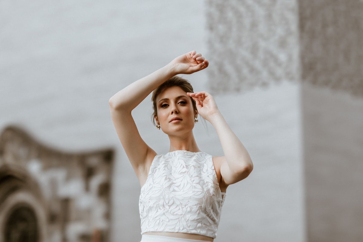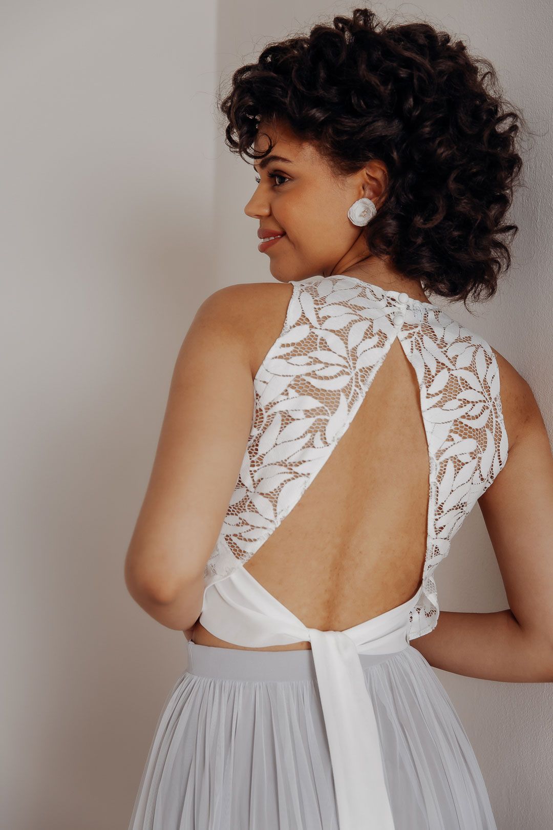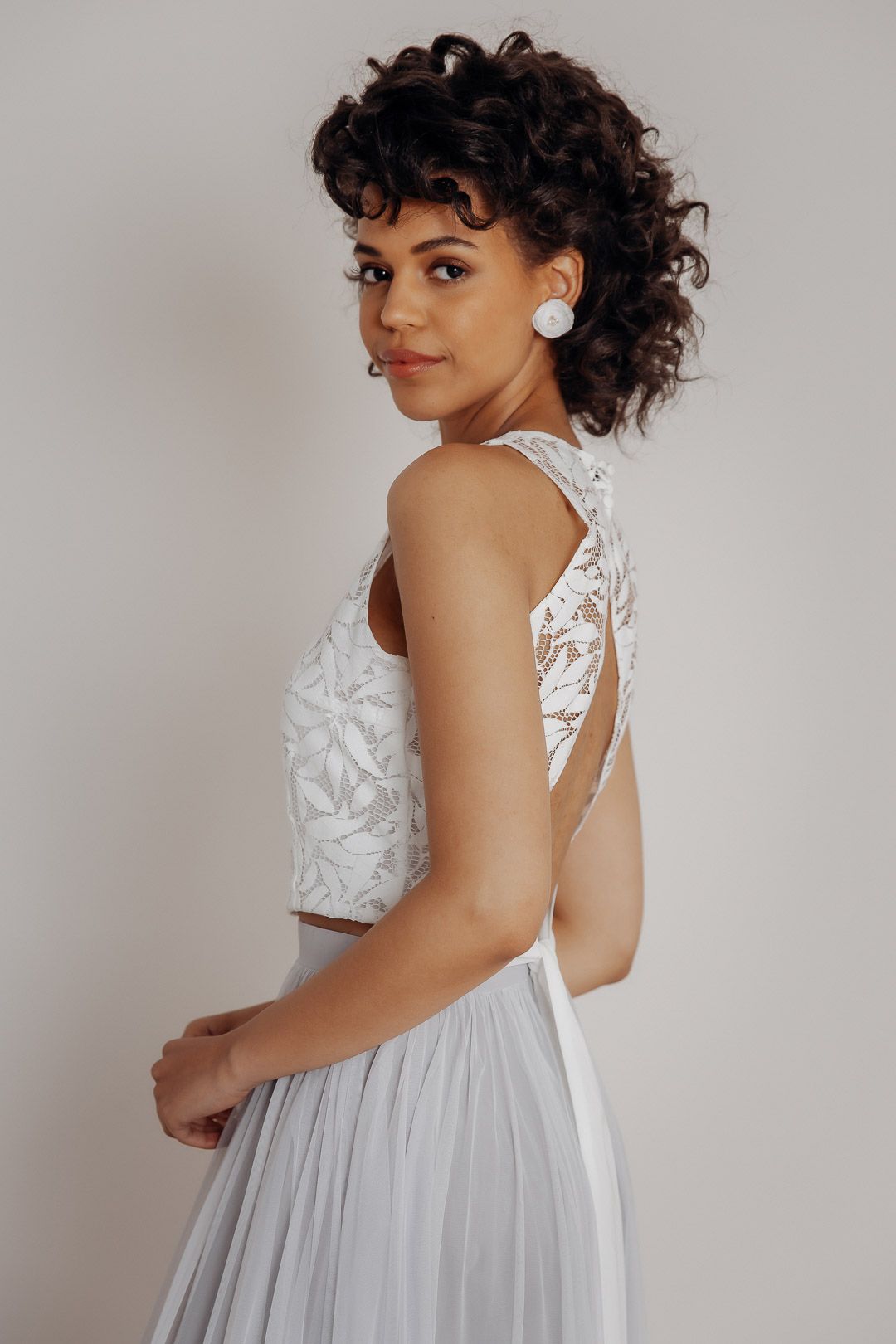 Das Emilia-Top ist ein Oberteil für stilvolle zweiteilige Brautkleid-Kombis.