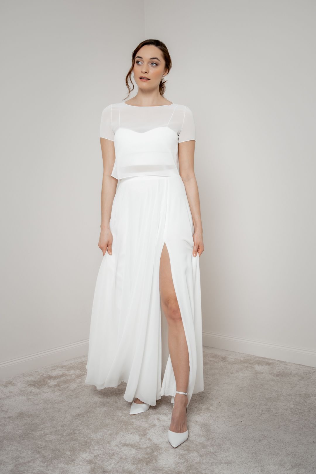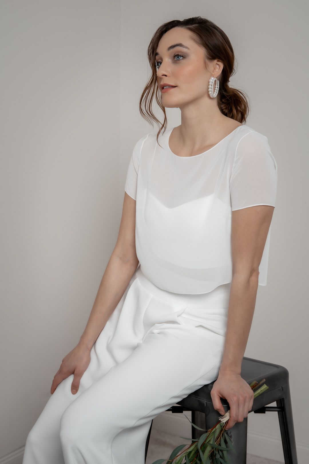 Kurzarm-Braut Top aus Chiffon – Lani noni