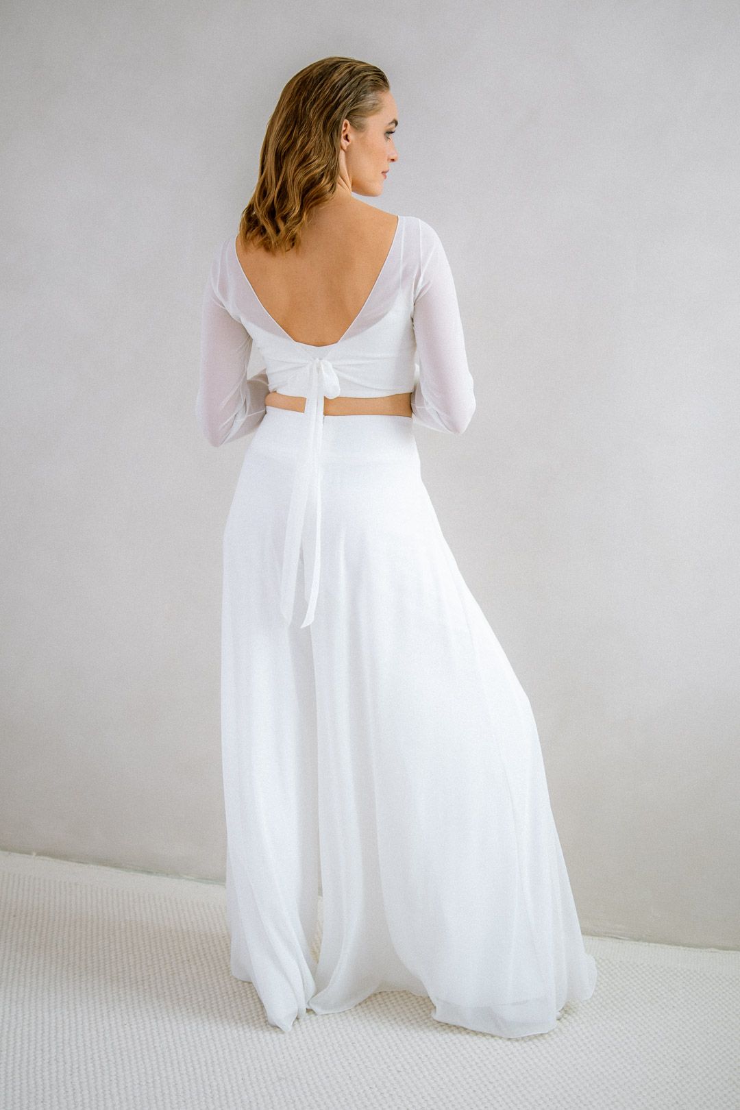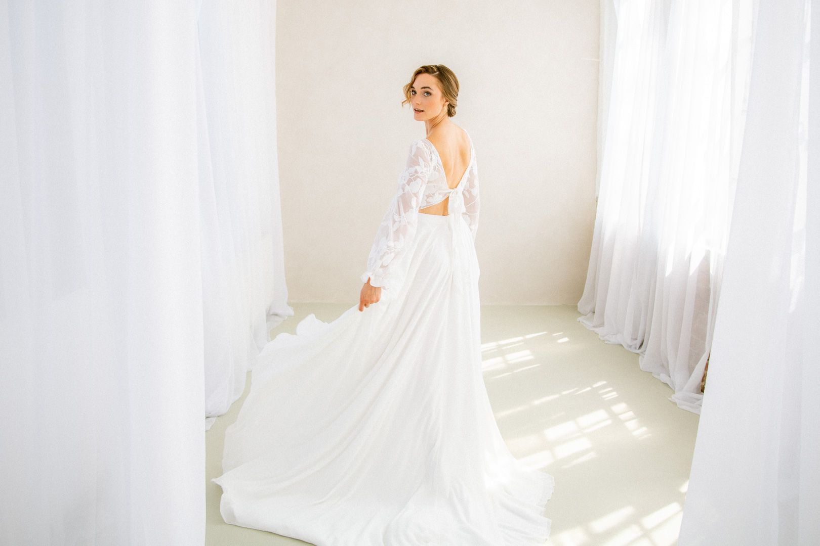 Feminine Silhouette: Rückenfreie Kleider schaffen eine feminine Silhouette, indem sie die Linien des Rückens und der Taille betonen. Dies kann dazu beitragen, die natürlichen Kurven der Braut zu unterstreichen und ihr eine grazile Form zu verleihen.