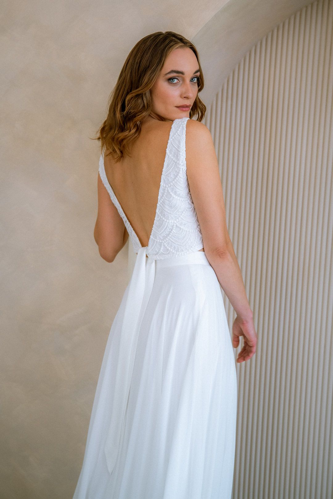 Sommerliche Leichtigkeit: Oft sind rückenfreie Kleider luftig und leicht, was sie besonders für Sommerhochzeiten geeignet macht. Als Braut kannst du dich frei bewegen und den besonderen Tag unbeschwert ohne Einschränkungen genießen.