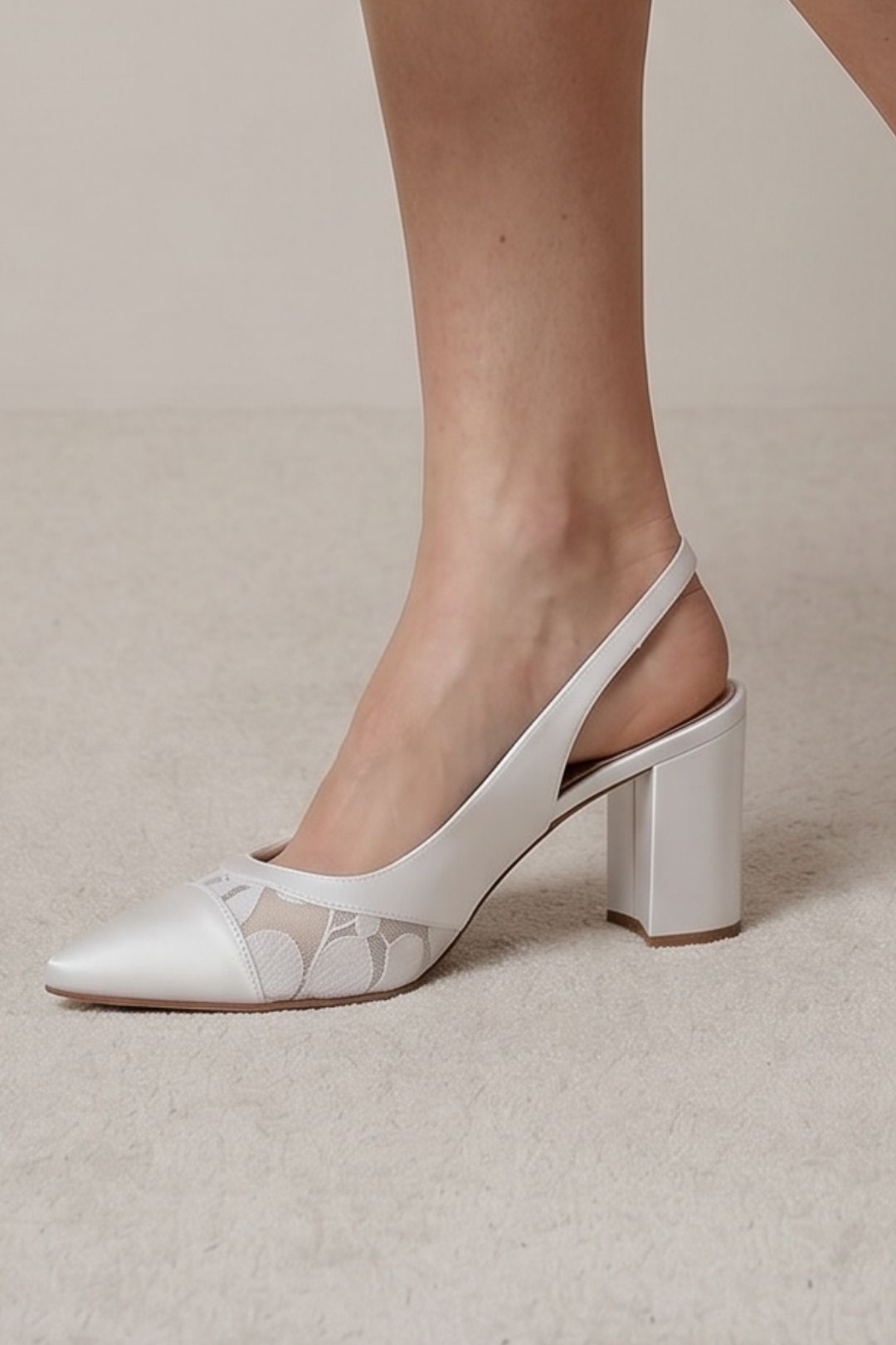 Generell sind flache Schuhmodelle wohl die bequemste Variante. Ein paar Abstriche bei der Bequemlichkeit musst du sehr wahrscheinlich selbst als geübte Trägerin machen, wenn du dich für einen 10 cm hohen Brautschuh mit spitzer Kappe entscheidest. Die aktuell sehr trendigen, spitz zulaufenden Schuhmodelle sind ganz besonders glamourös, jedoch bestimmt nicht für jede Fußform geeignet. Bräute mit einem eher breitem Fuß wählen lieber einen Brautschuh mit abgerundeter Kappe, einen Peeptoe aus weichem Leder oder eine offene Sandalette.