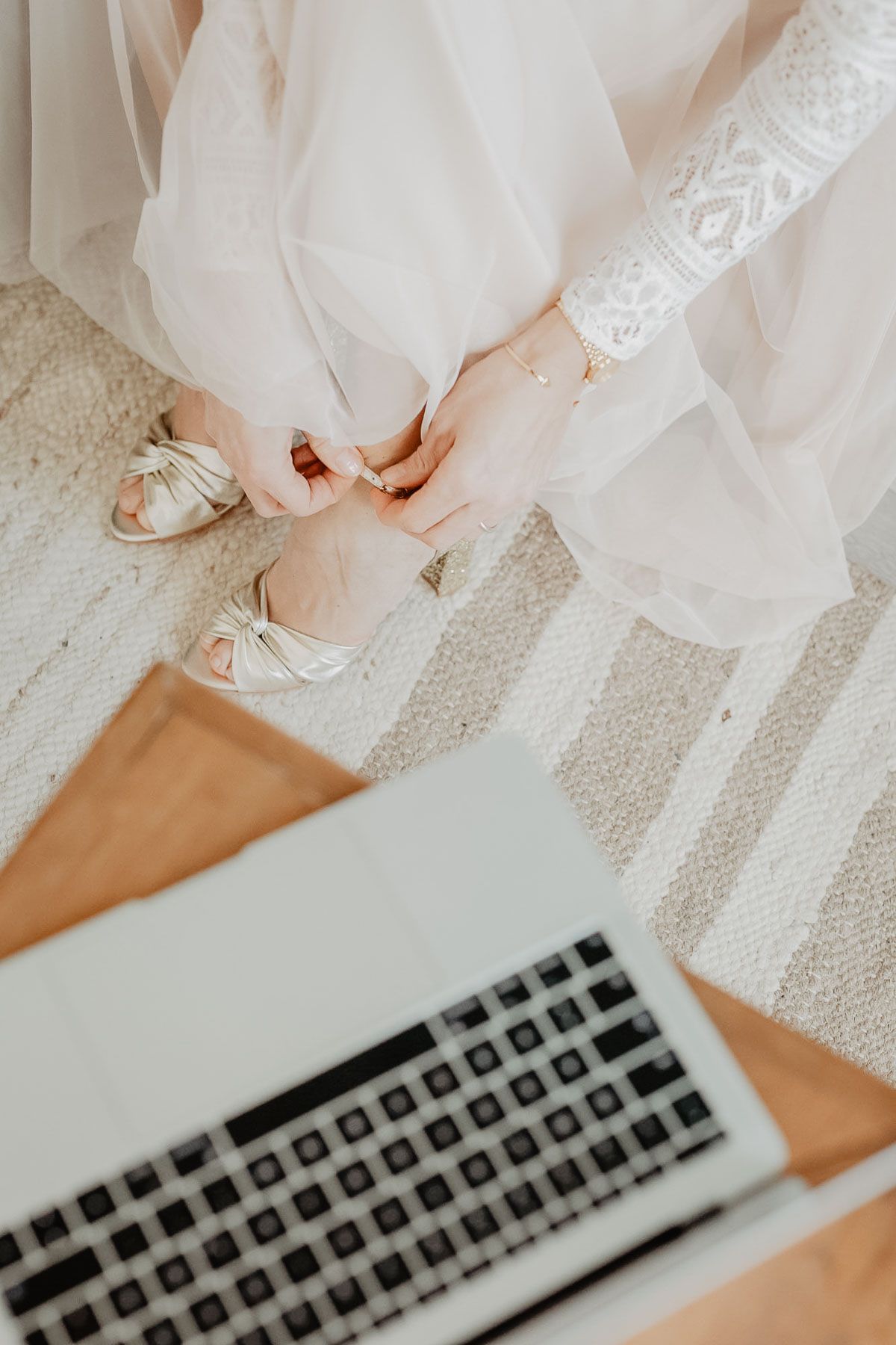 - Einlaufen der Brautschuhe: Beginne frühzeitig damit, die Brautschuhe einzulaufen. Trage sie zu Hause einige Wochen vor der Hochzeit regelmäßig für kurze Zeiträume, um deine Füße an die Schuhe zu gewöhnen und mögliche Druckstellen zu vermeiden.