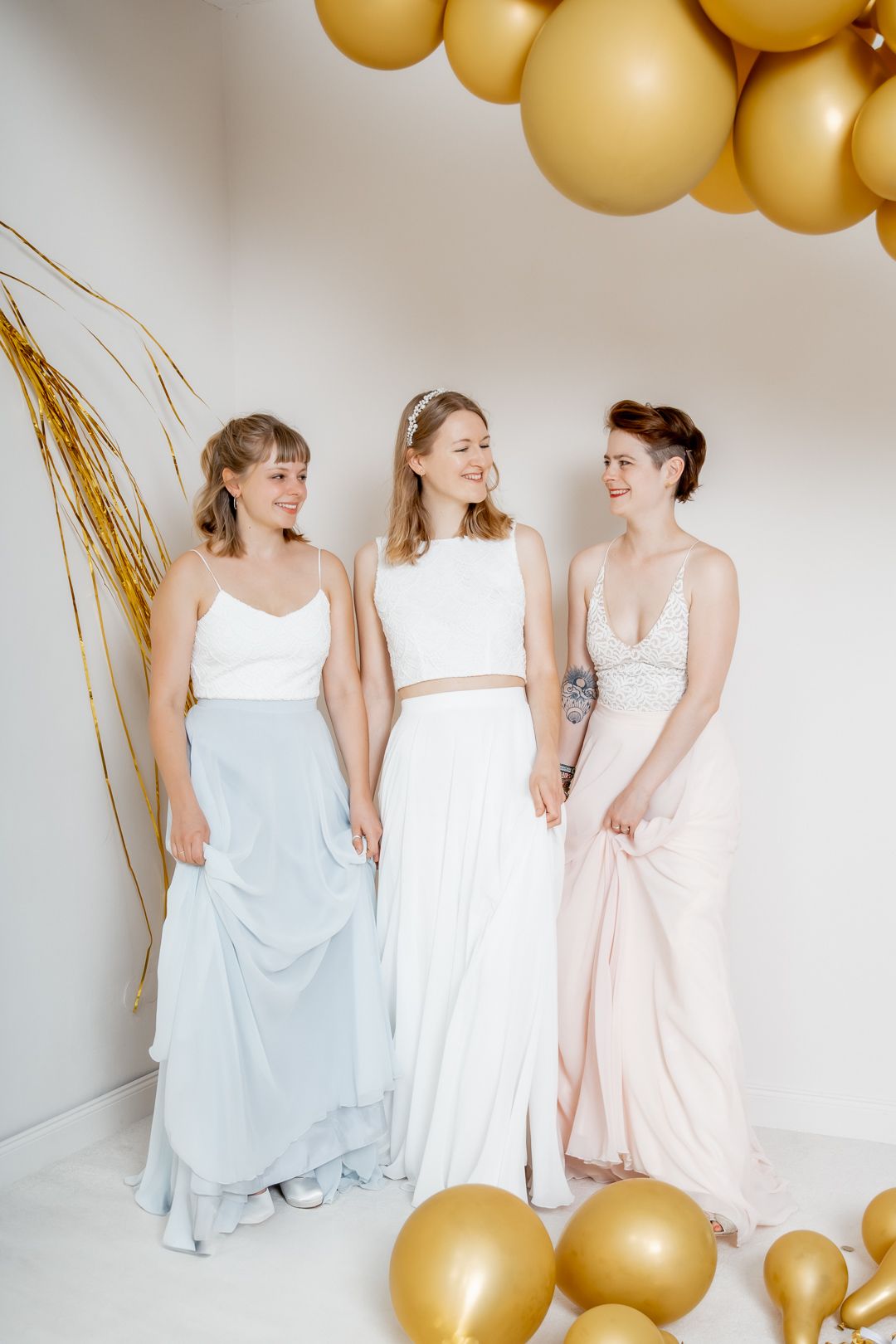 Du suchst eine Alternative zu klassischem Hochzeitsweiß? Entdecke farbige Brautkleider bei noni. Kombiniere unsere Braut Tops mit Röcken in zarten Blush- und Pastelltönen oder elegantem Grau für einen individuellen und modernen Look, der so besonders ist wie du.