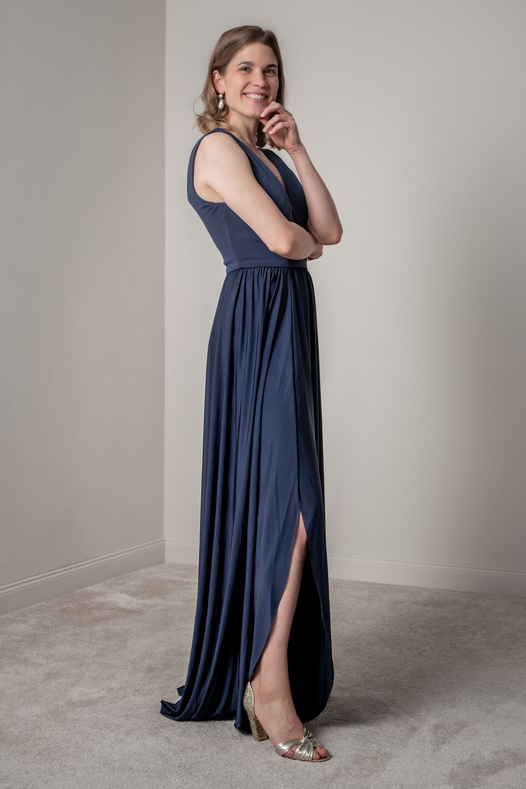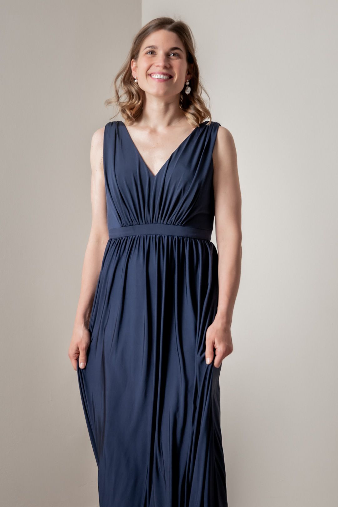 Starte frühzeitig mit der Suche nach deinem Kleid, damit dir genügend Zeit bleibt, verschiedene Optionen zu prüfen und eventuelle Änderungen vornehmen zu lassen. Einige Designerkleider benötigen möglicherweise eine längere Vorlaufzeit. Wenn es der Zeitplan der Braut erlaubt, orientiere dich am Brautkleid und bezieh die Braut in die Suche nach deinem Trauzeuginnen-Outfit mit ein, damit eure Kleider schön miteinander harmonieren.