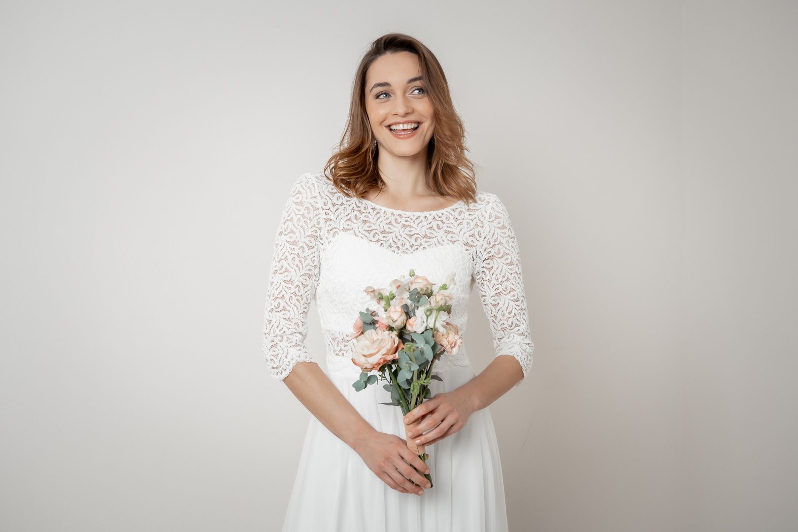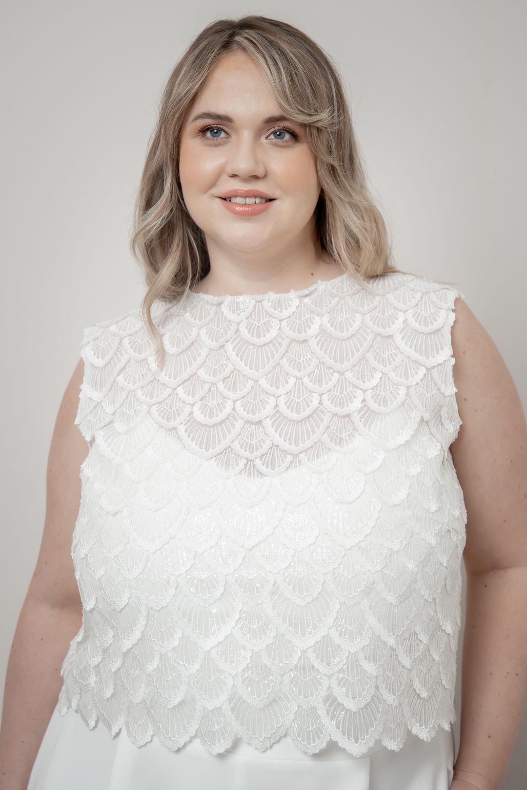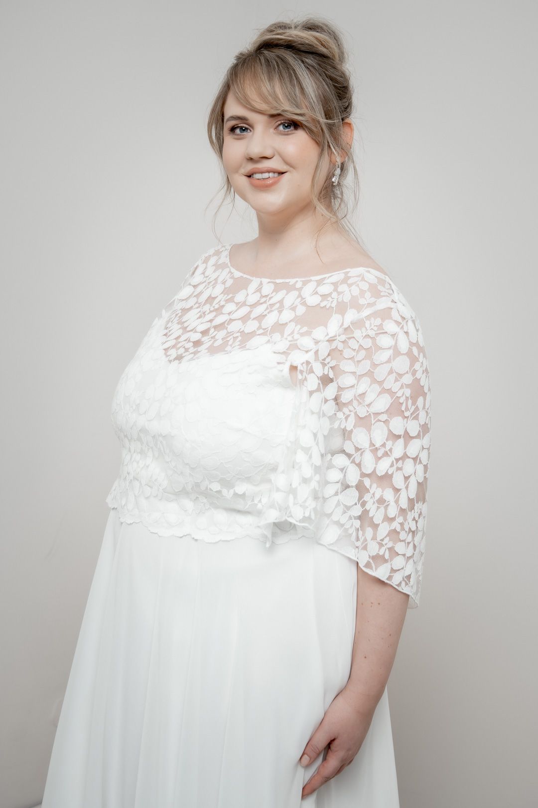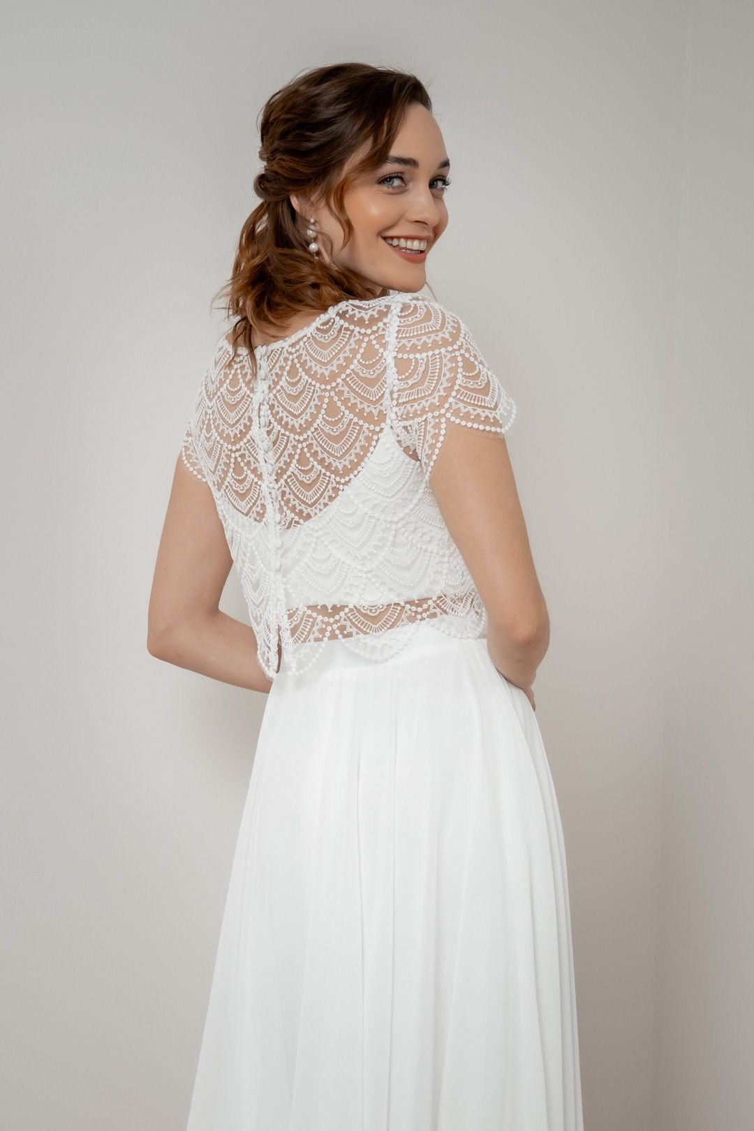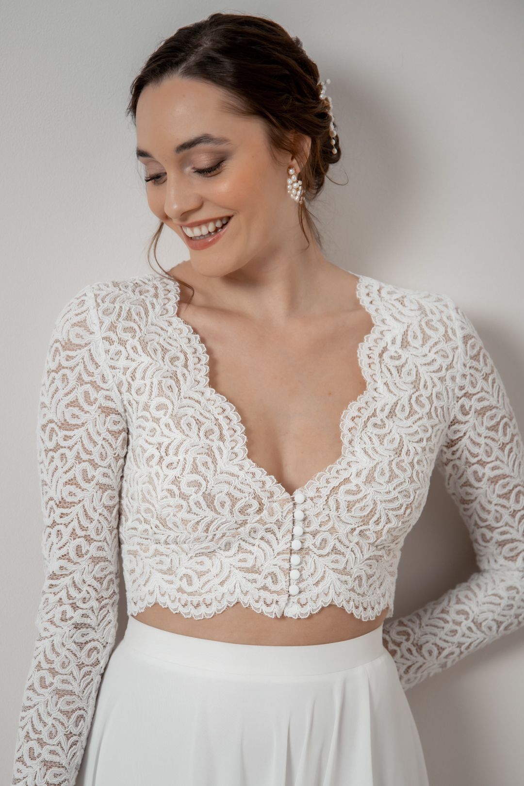 Ein Braut Top aus Spitze ist eine elegante und romantische Wahl, die jedem Braut Look eine zarte Note verleiht. Egal, ob für Standesamt, Freie Trauung oder Kirche: Spitze kann deinem Outfit das Gewisse Etwas geben.