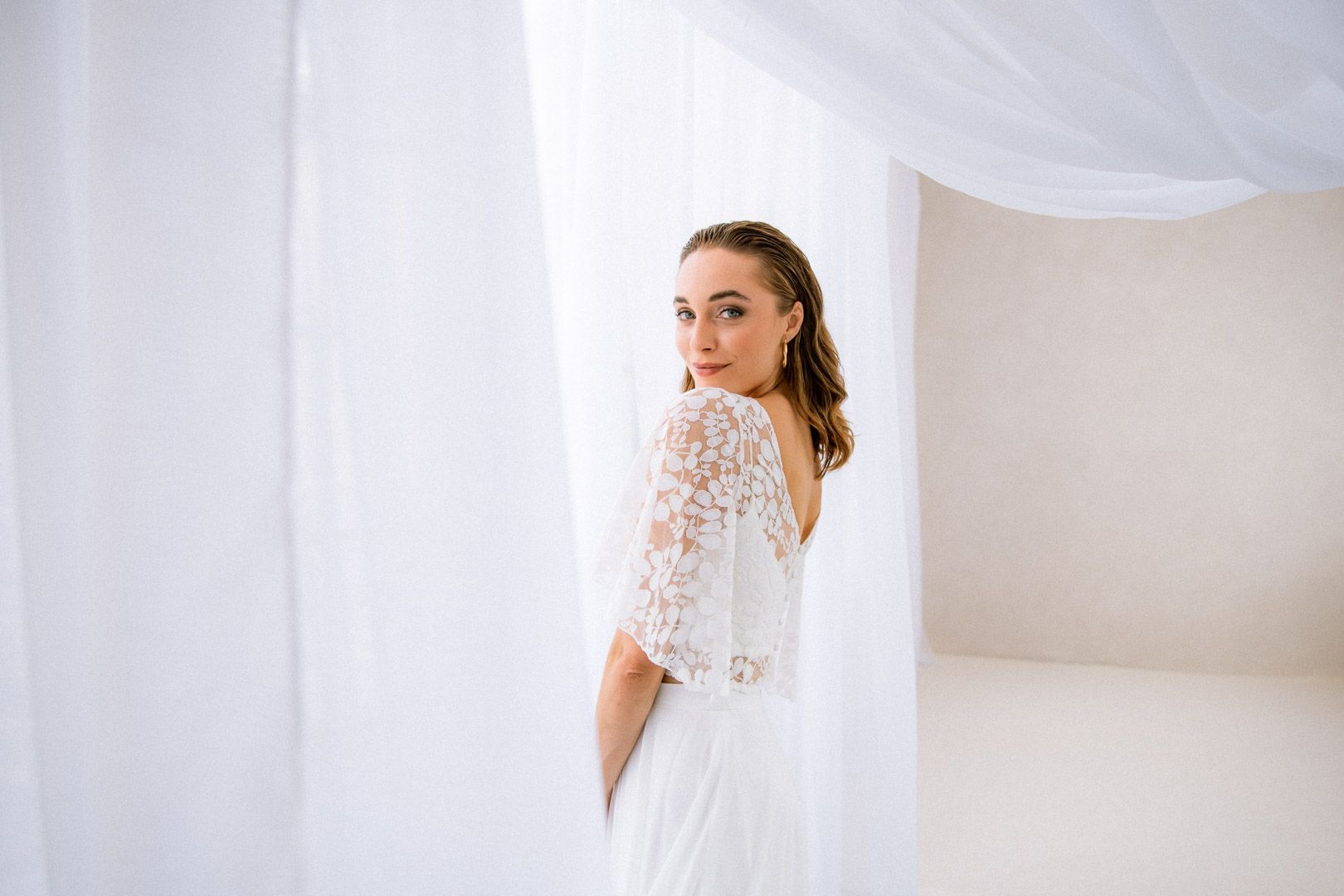 Braut Top aus Botanikspitze mit weiten Flügelärmeln – Lucy noni