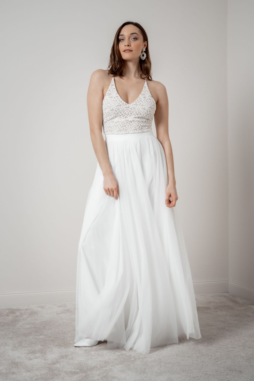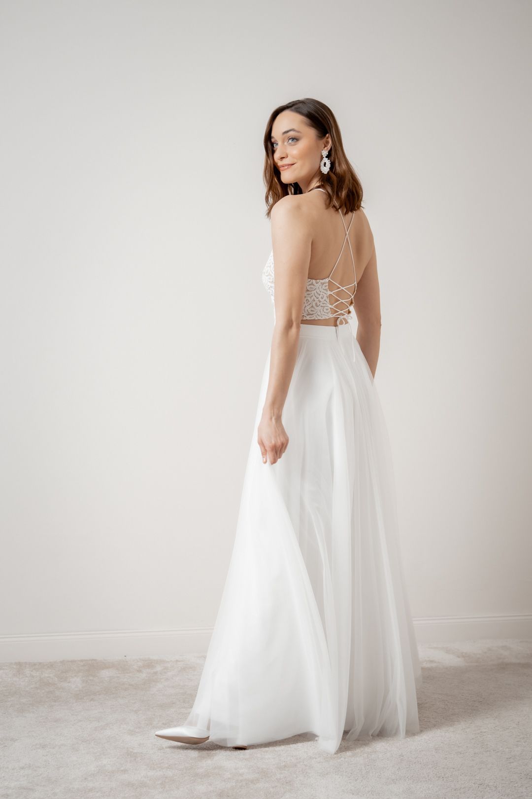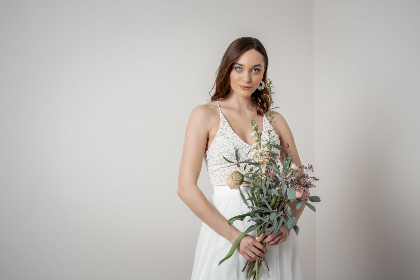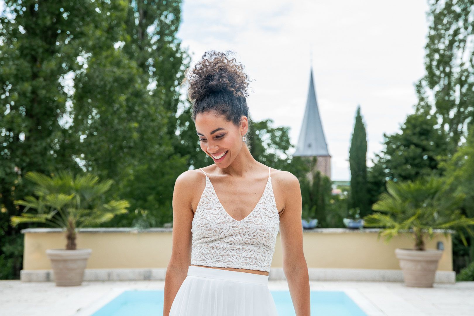 noni Brautkleider, Tops, Bodies, Röcke, Jumpsuits und Hosen für die Hochzeit fertigen wir in sorgfältiger Handarbeit in unserem Atelier in Köln und einer handverlesenen Manufaktur in Europa für dich an.