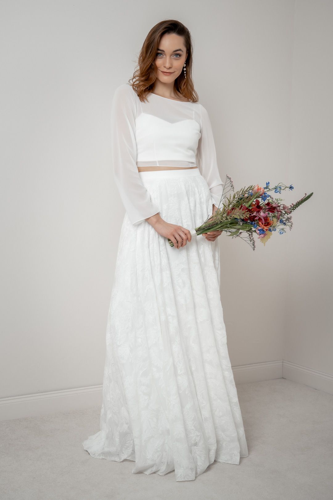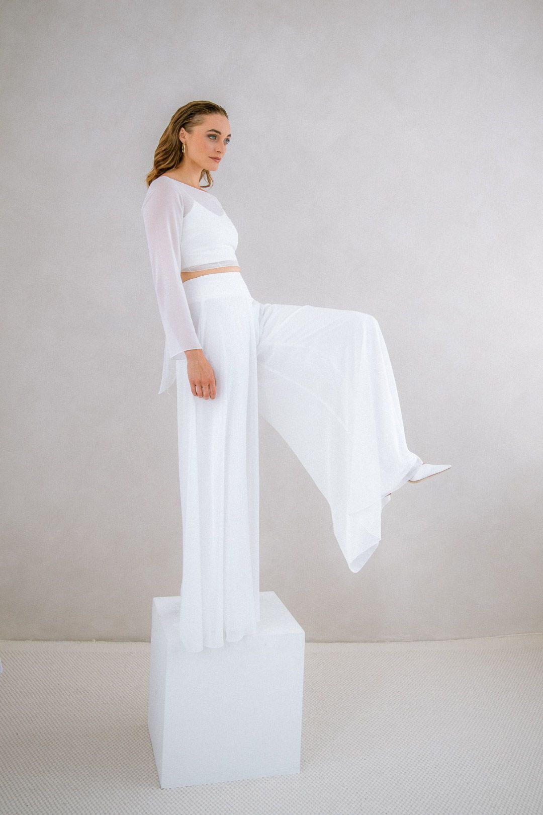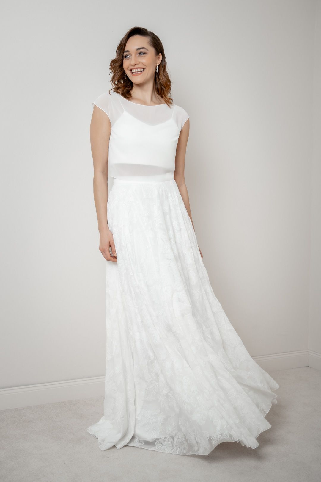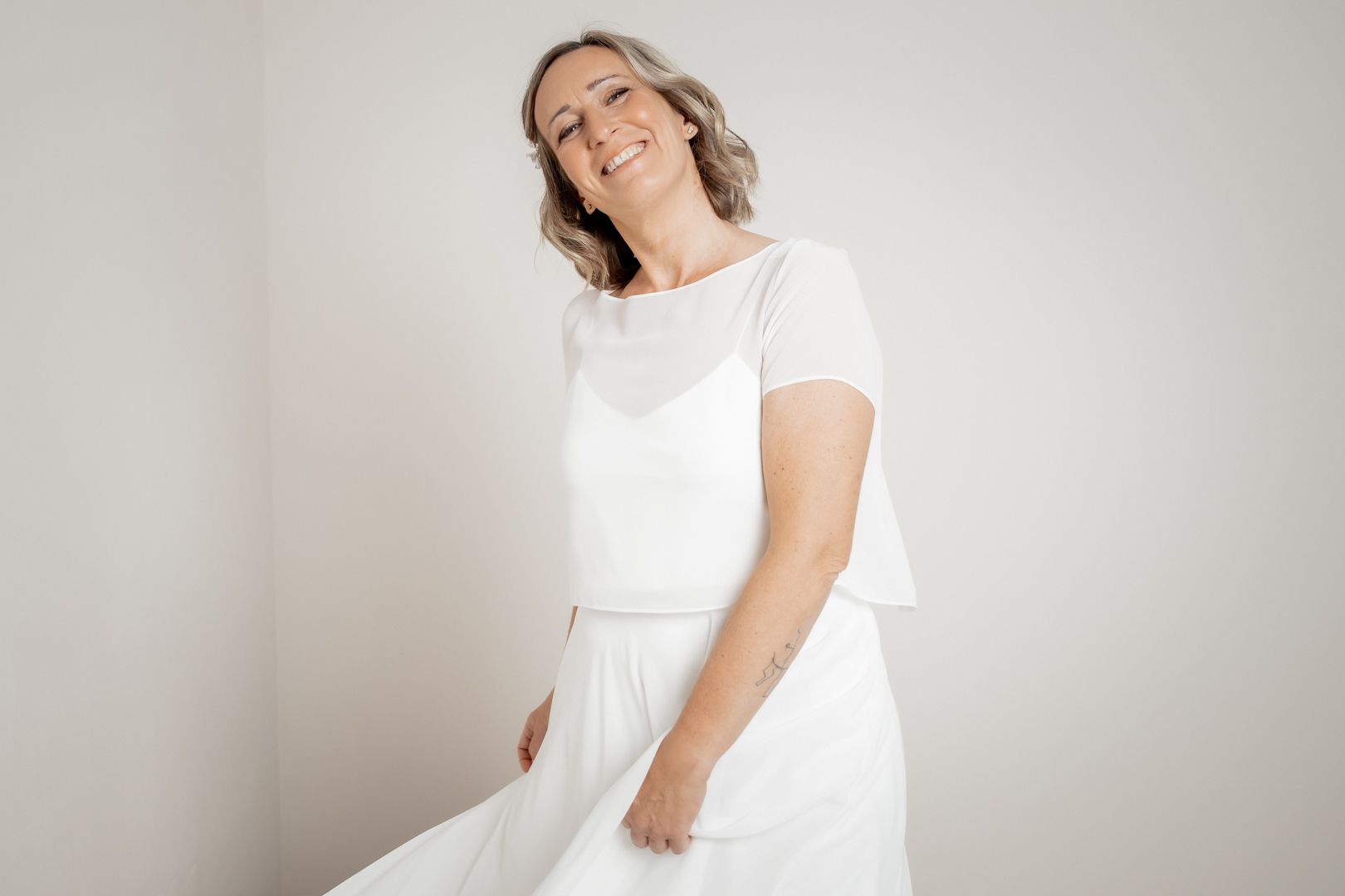 Ein weißes Brautkleid ist der Klassiker auf dem Standesamt. Entdecke unsere Auswahl an weißen Tops, Röcken und Hosen und stelle dir dein individuelles Outfit zusammen.