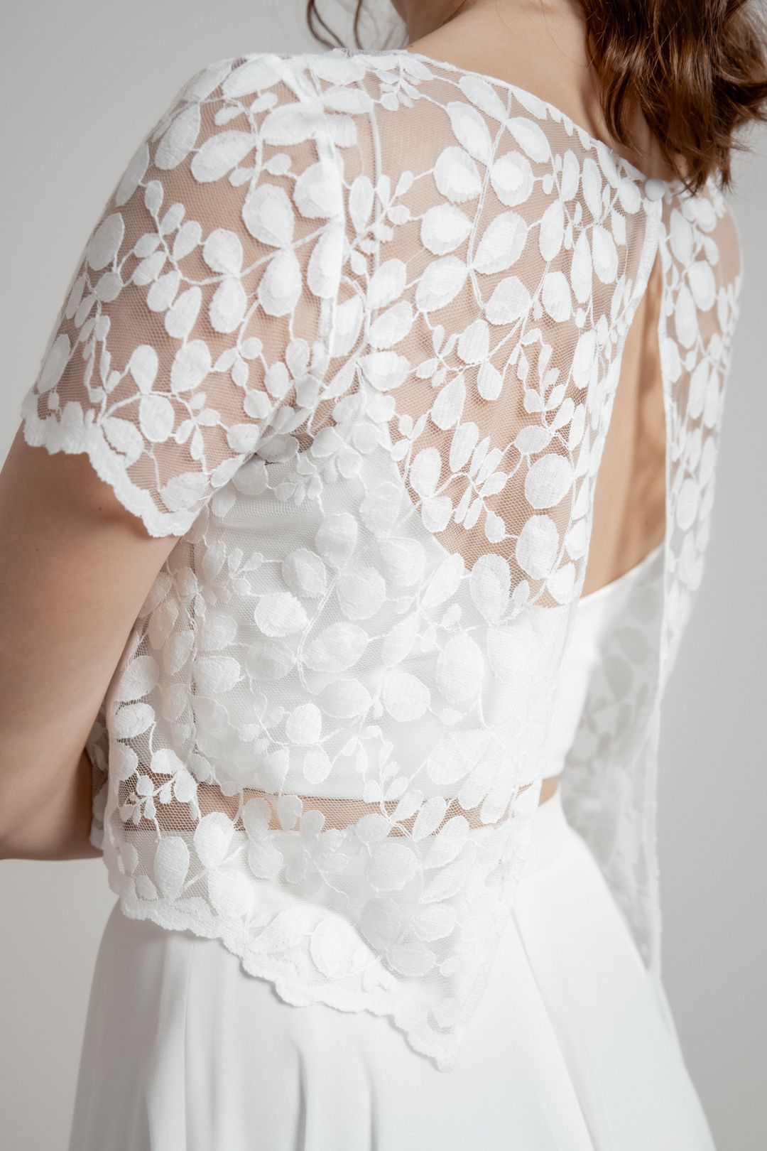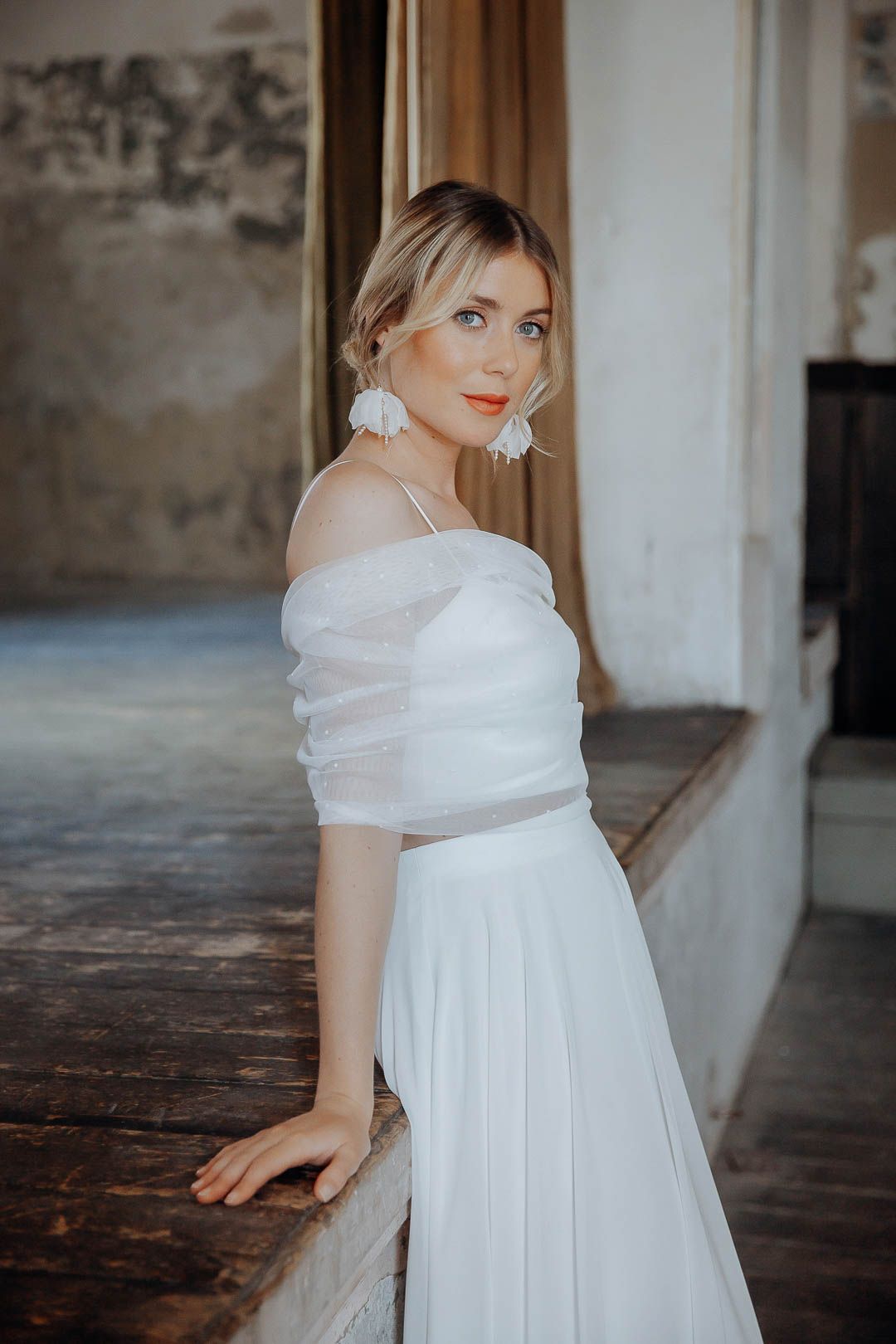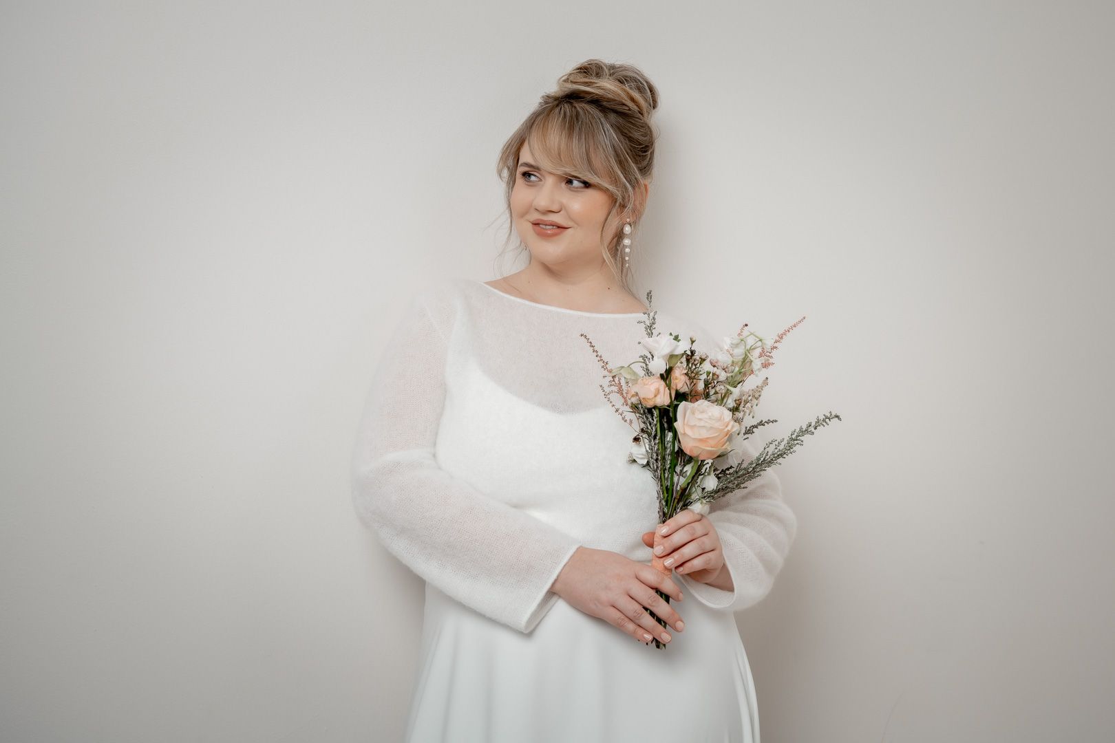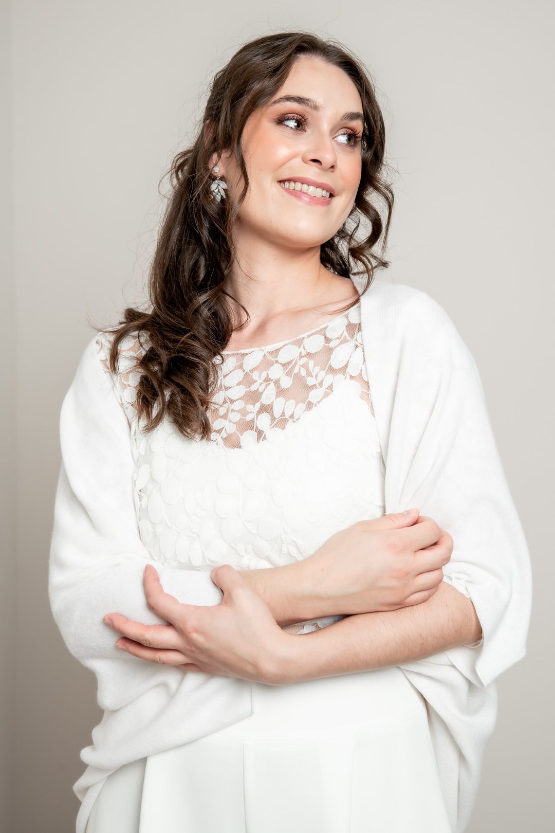Falls es am Tag deiner standesamtlichen Trauung kühl wird, gibt es stilvolle Überzieh-Optionen, die dein Brautkleid ergänzen.