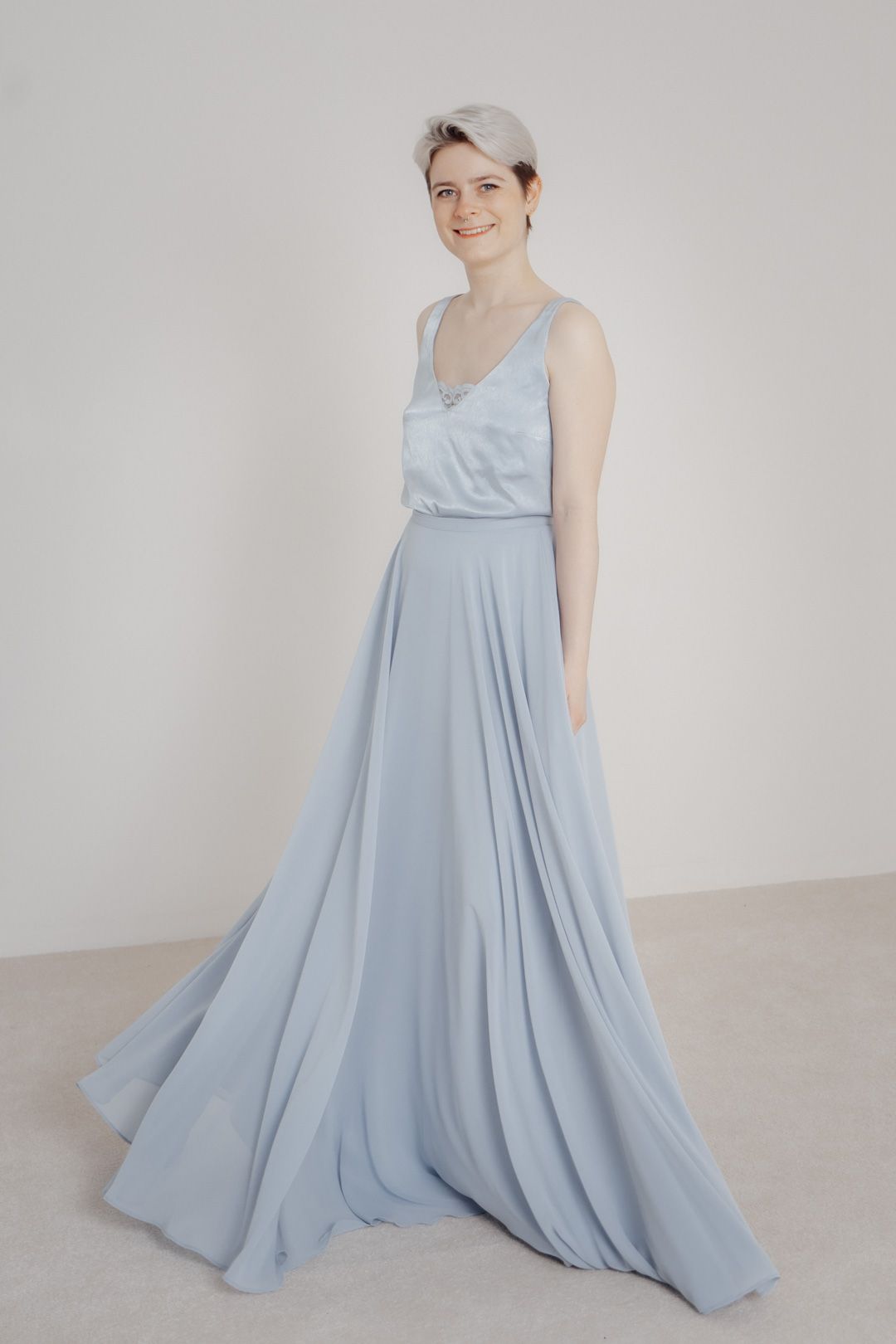 Popular cuts such as A-line, empire or mermaid offer the right option for every figure. Current trends include romantic details such as lace, playful ruffles and elegant off-the-shoulder or backless designs. These elements ensure that every bridesmaid looks stylish and feels comfortable.