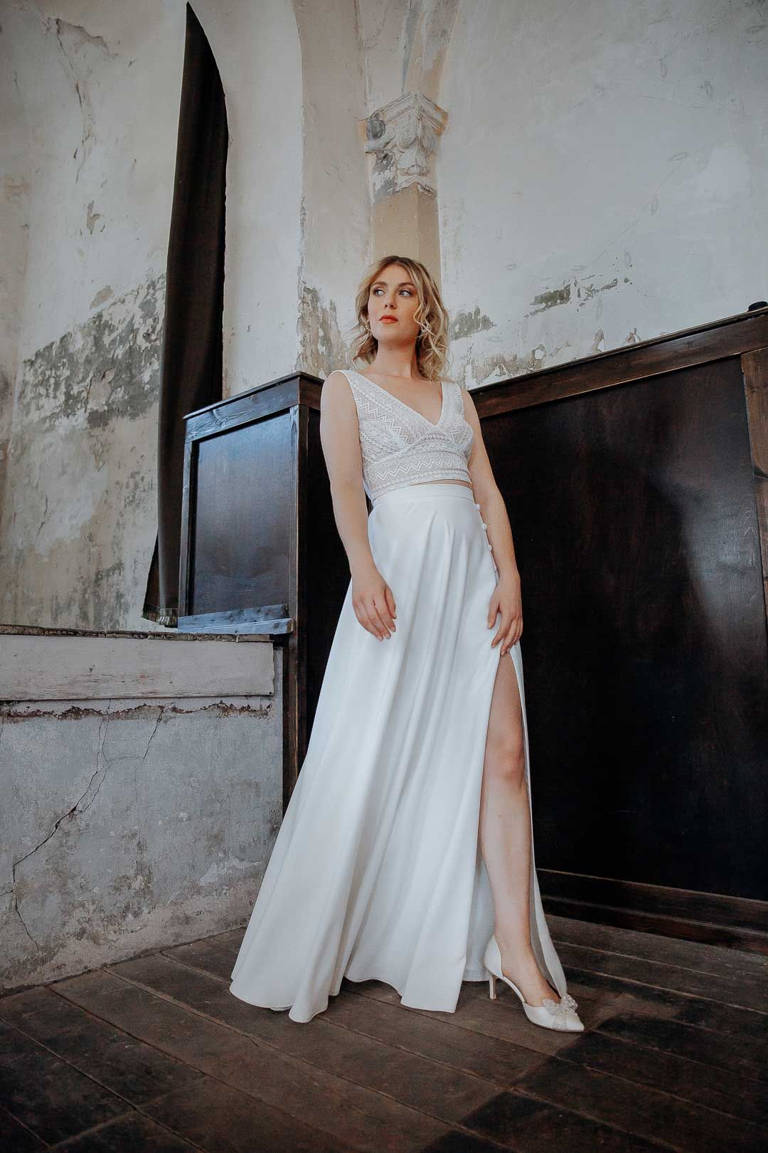 Langer Braut Rock mit Schlitz und Zierknöpfen – Eira noni