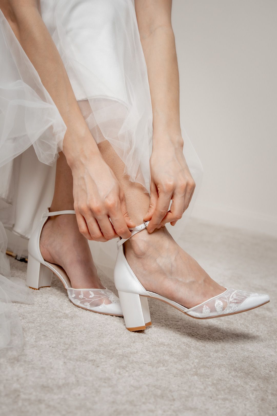 Block heel bridal shoes are available in a range of heel heights. Whether you prefer a low heel for maximum comfort or a medium to high heel for an elegant silhouette, the choice depends on individual preference and comfort. Compared to narrow heels, block heels offer a more stable base, which is particularly beneficial on uneven ground or long wedding days.