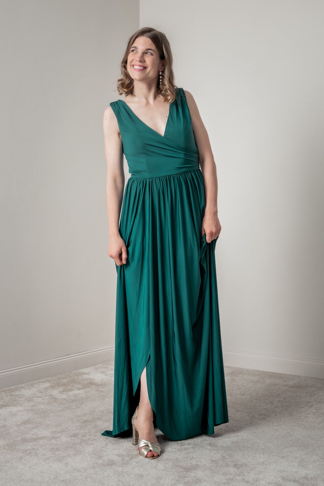Accessories play an essential role in perfectly rounding off an elegant long dress as a wedding guest.
