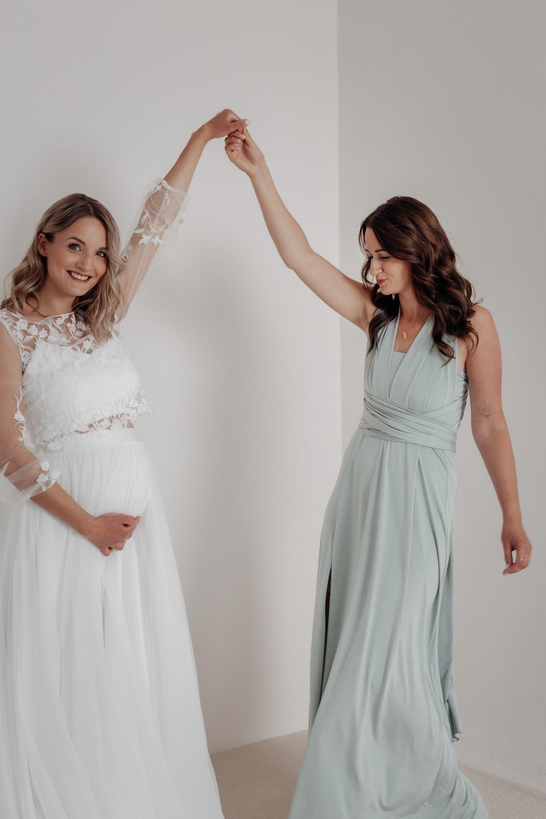 The choice of colour should take into account both current trends and the wedding colour palette. While classic tones such as pastel pink, lavender or navy are always popular, modern weddings are increasingly opting for bold colors such as emerald green or terracotta. It is important that the color harmonizes with the overall concept and lets the bridesmaids shine.