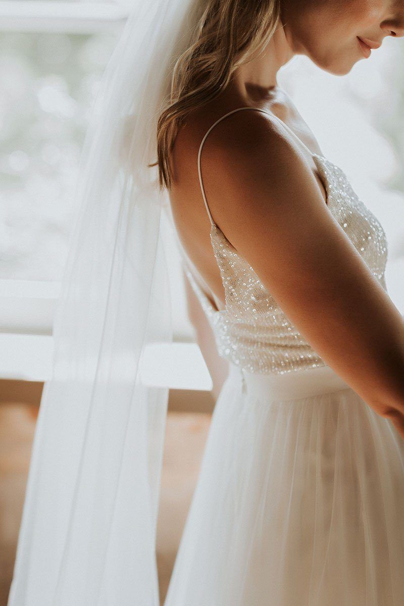 - Veil: A veil is a classic accessory that goes perfectly with a white wedding dress. There are different lengths and styles, from birdcages, short veils to long, floating veils that create a dramatic effect.