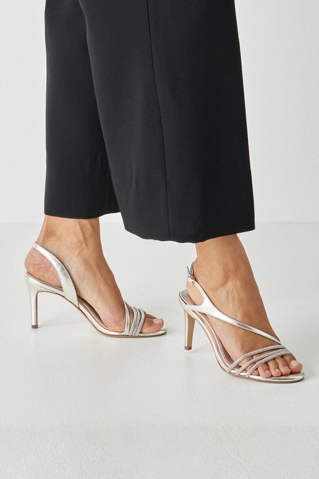 Sparkling party shoes with stiletto heels - ideal for weddings, parties and many more special occasions: straps decorated with small glittering stones not only provide support, but also create a glamorous look.