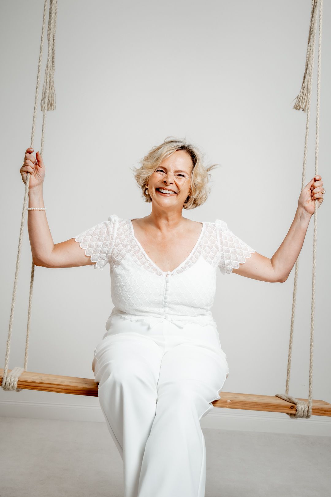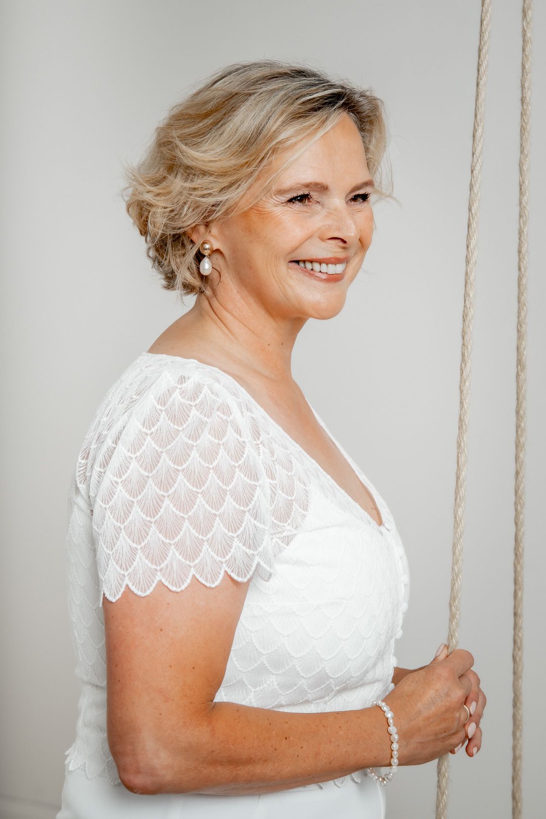 Choose from our large selection: from typical wedding white to romantic rosé to grey, silver or gold. With a bateau neckline or a sensual back cutout, there is something for every taste. And if you're still hesitant: as a brave bride over 50, you shouldn't be afraid of a back neckline. With an elegant back chain you can add glamorous accents and create a confident look.