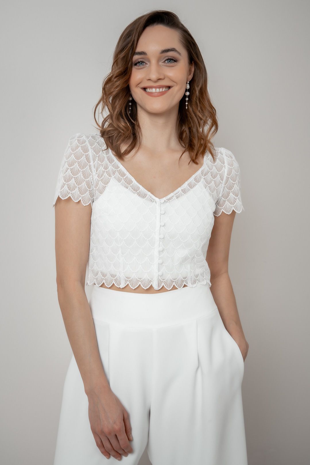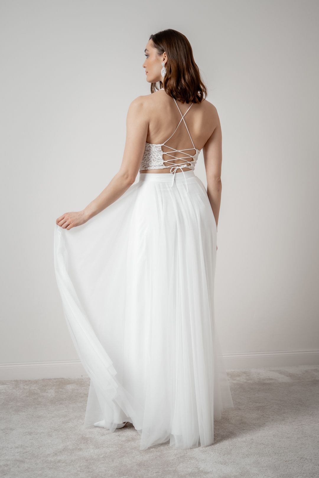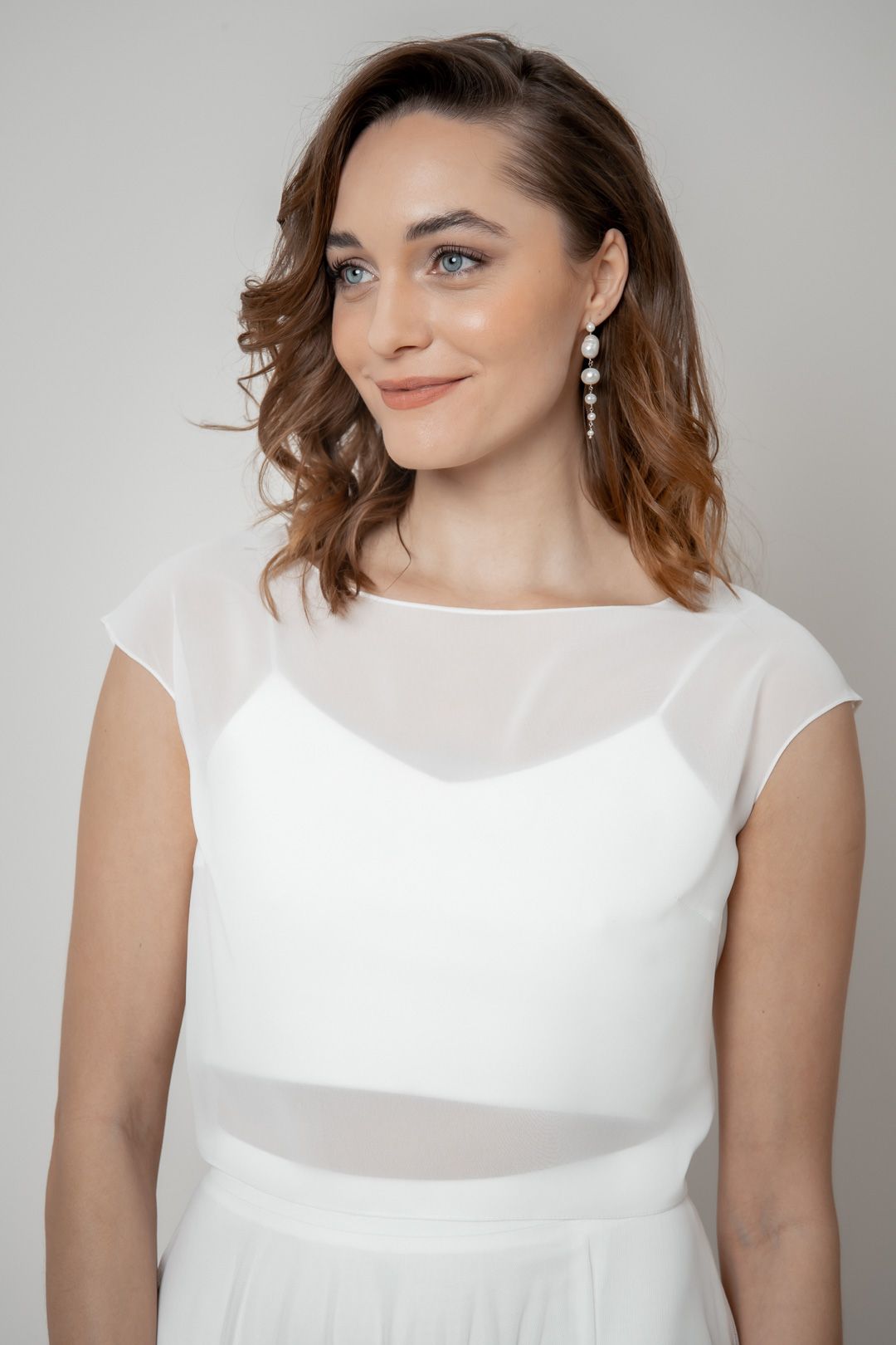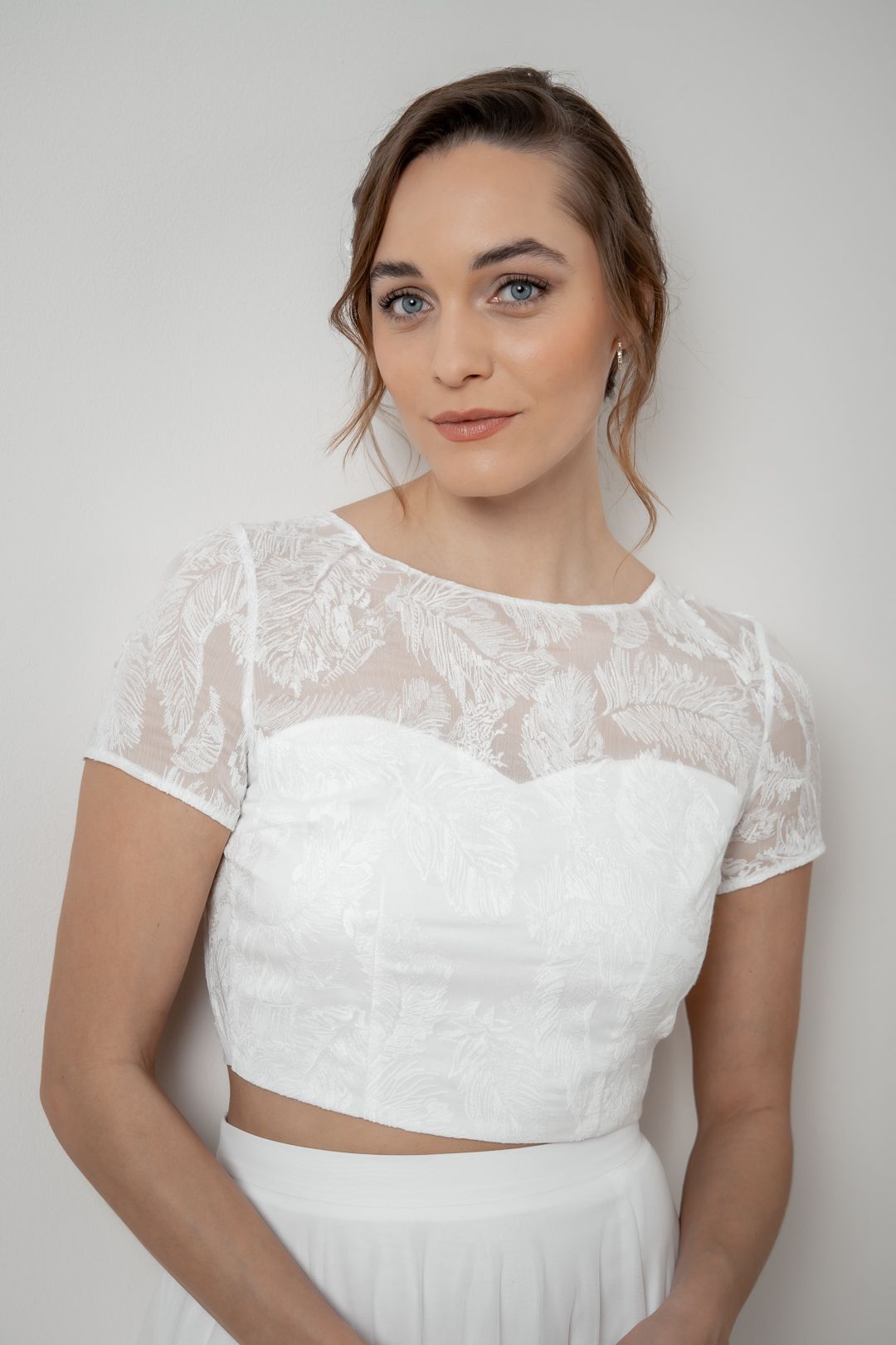 If you want to cover your shoulders in church or in the cooler evenings without resorting to a classic bolero or bridal jacket, then our noni bridal tops may be just the thing for you. Simply put on and taken off again, they give you a completely new look in no time and turn a simple wedding dress into a romantic two-piece wedding dress.