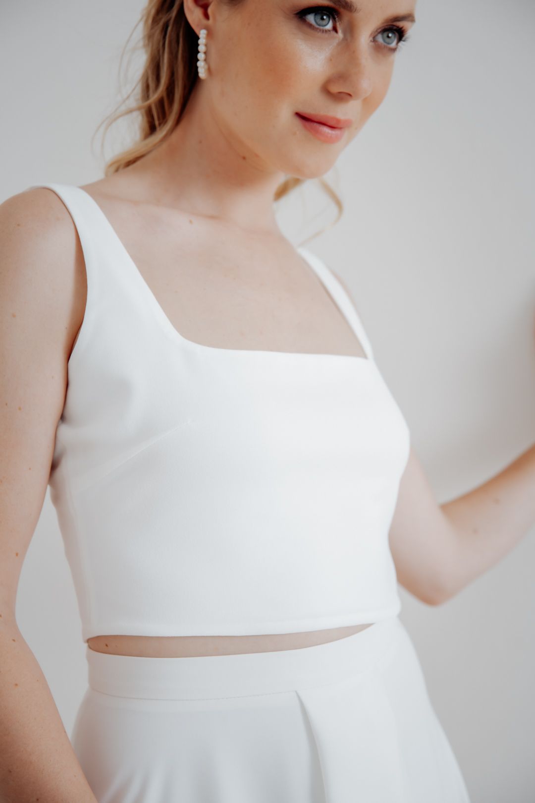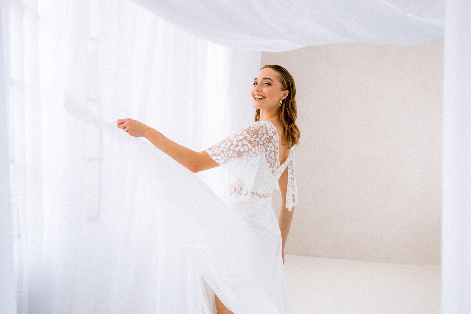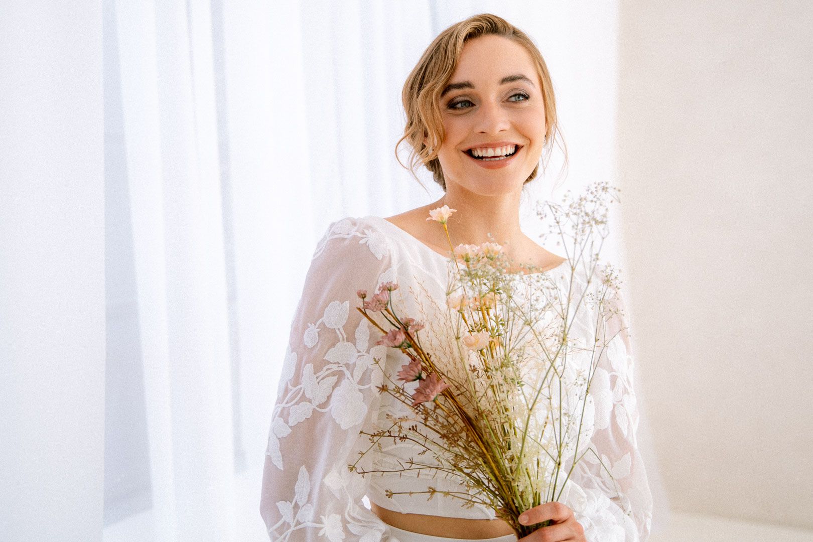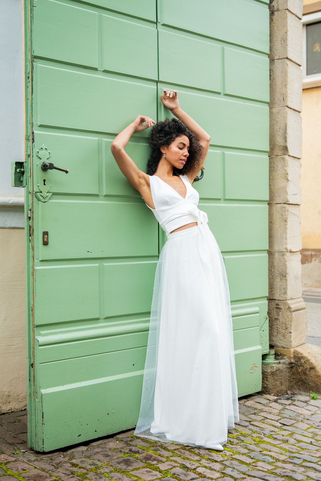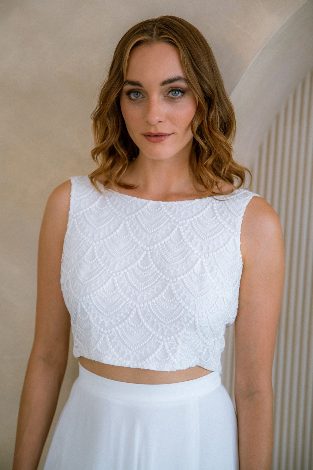 If you want to cover your shoulders in church or in the cooler evenings without resorting to a classic bolero or bridal jacket, then our noni bridal tops may be just the thing for you. Simply put on and taken off again, they give you a completely new look in no time and turn a simple wedding dress into a romantic two-piece wedding dress.