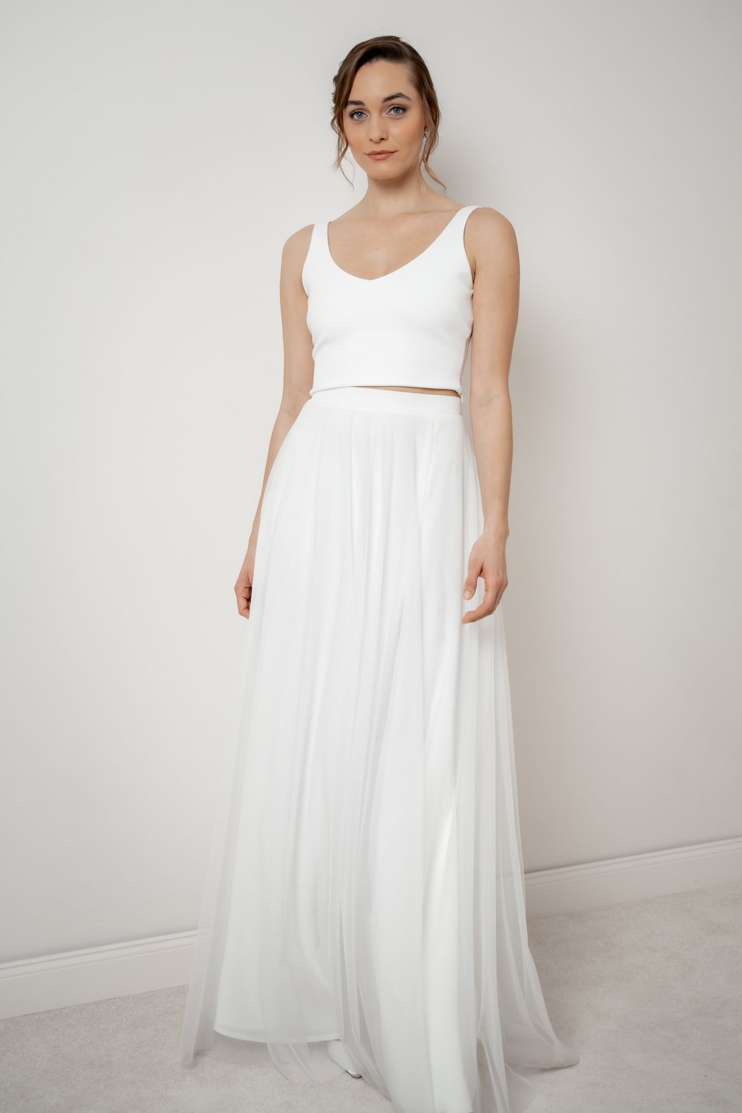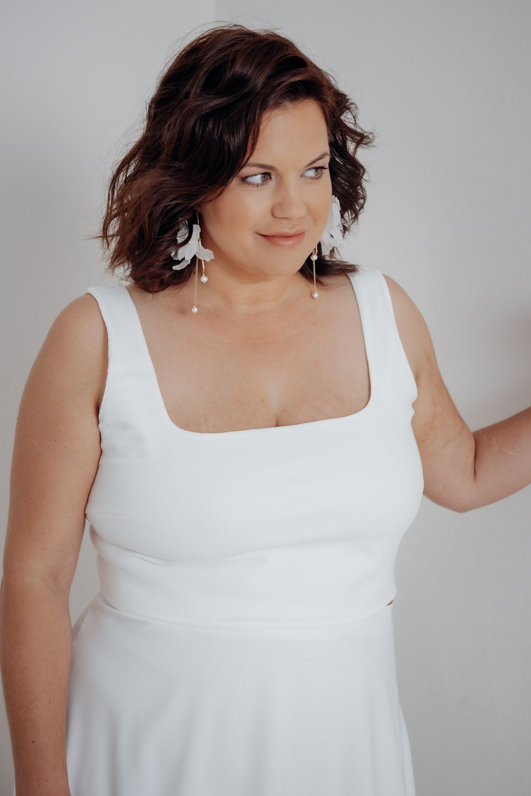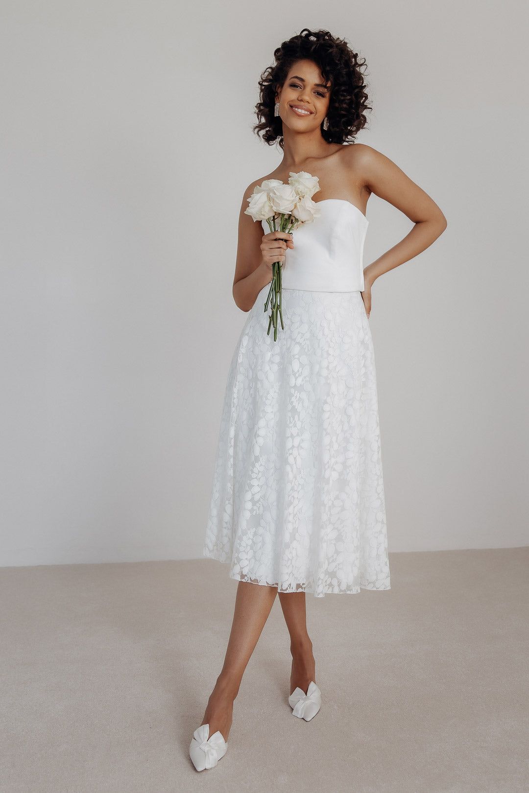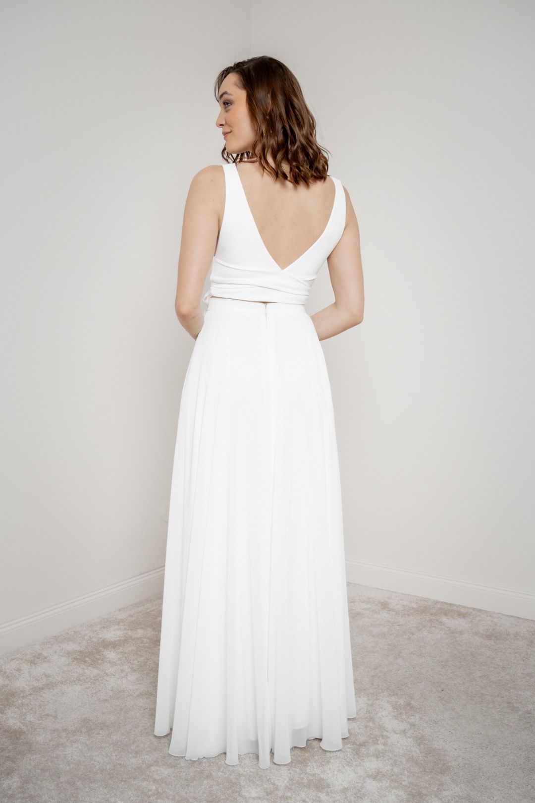 If you want to cover your shoulders in church or in the cooler evenings without resorting to a classic bolero or bridal jacket, then our noni bridal tops may be just the thing for you. Simply put on and taken off again, they give you a completely new look in no time and turn a simple wedding dress into a romantic two-piece wedding dress.