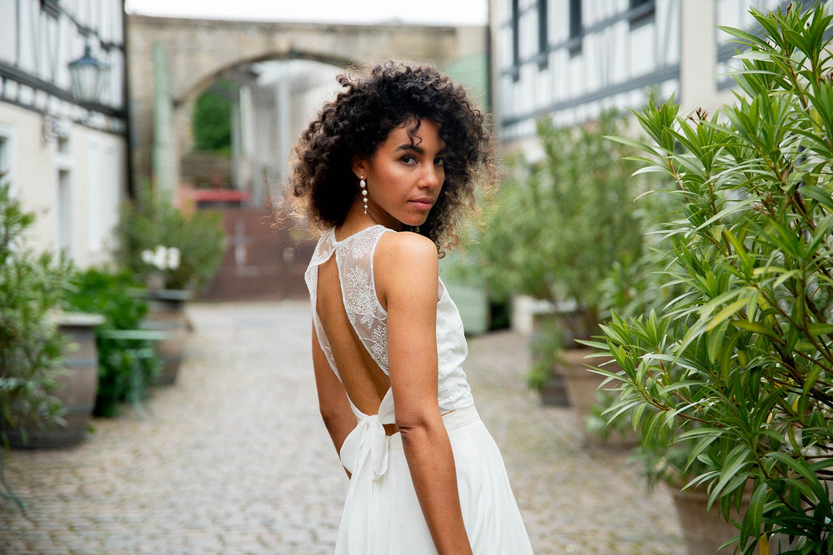 Backless wedding dresses have become an integral part of modern bridal fashion. While for a long time only cutouts on the front part of the wedding dress were popular, wedding dresses with a surprising back are now becoming more and more common and create breathtaking looks. The depth of the back neckline can vary greatly and is determined by the bride's personal taste. From a short V-neck in the back to a back with cut-outs to super deep necklines up to the bottom - whatever you like and what you feel most comfortable in on your big day is allowed.