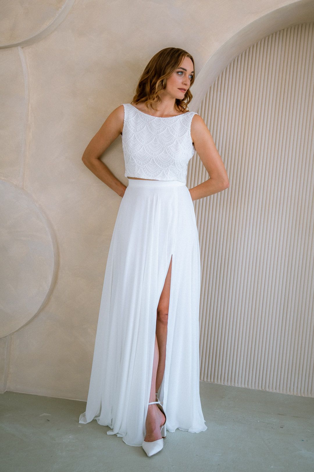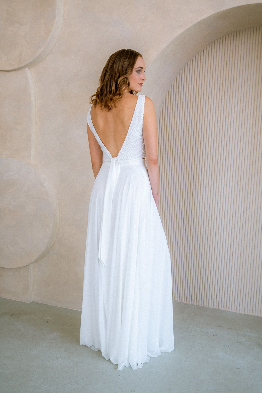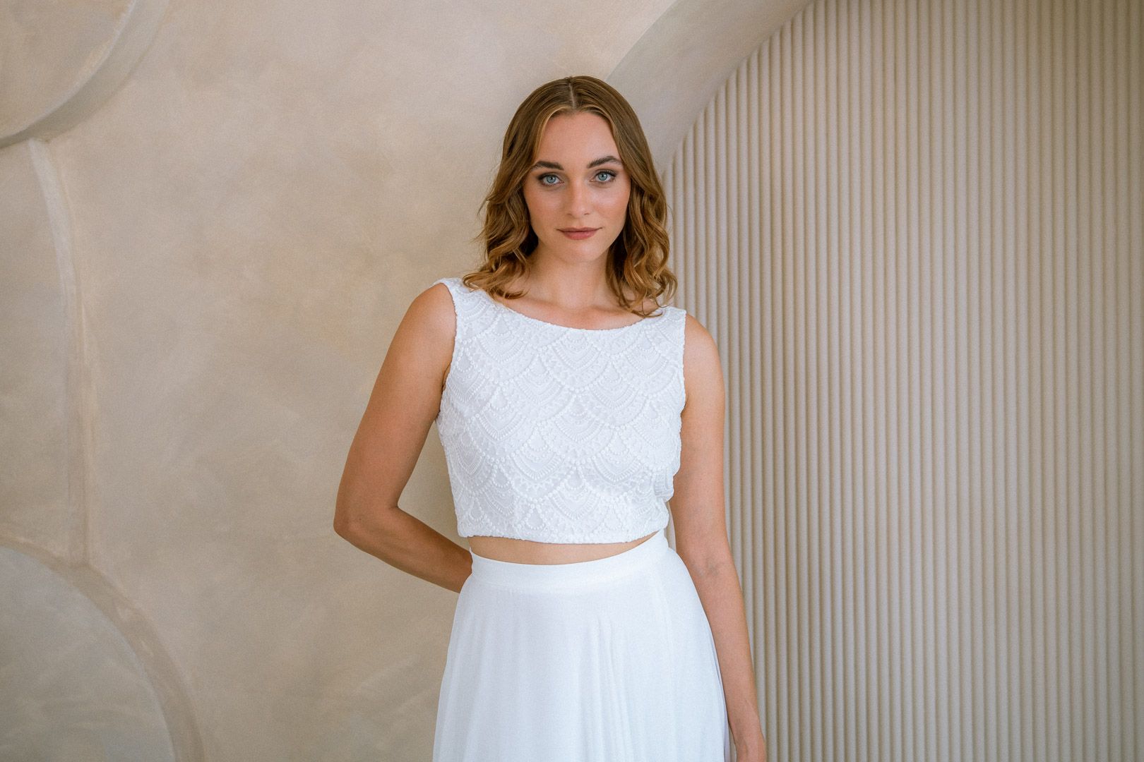 noni Brautkleider, Tops, Bodies, Röcke, Jumpsuits und Hosen für die Hochzeit fertigen wir in sorgfältiger Handarbeit in unserem Atelier in Köln und einer handverlesenen Manufaktur in Europa für dich an.