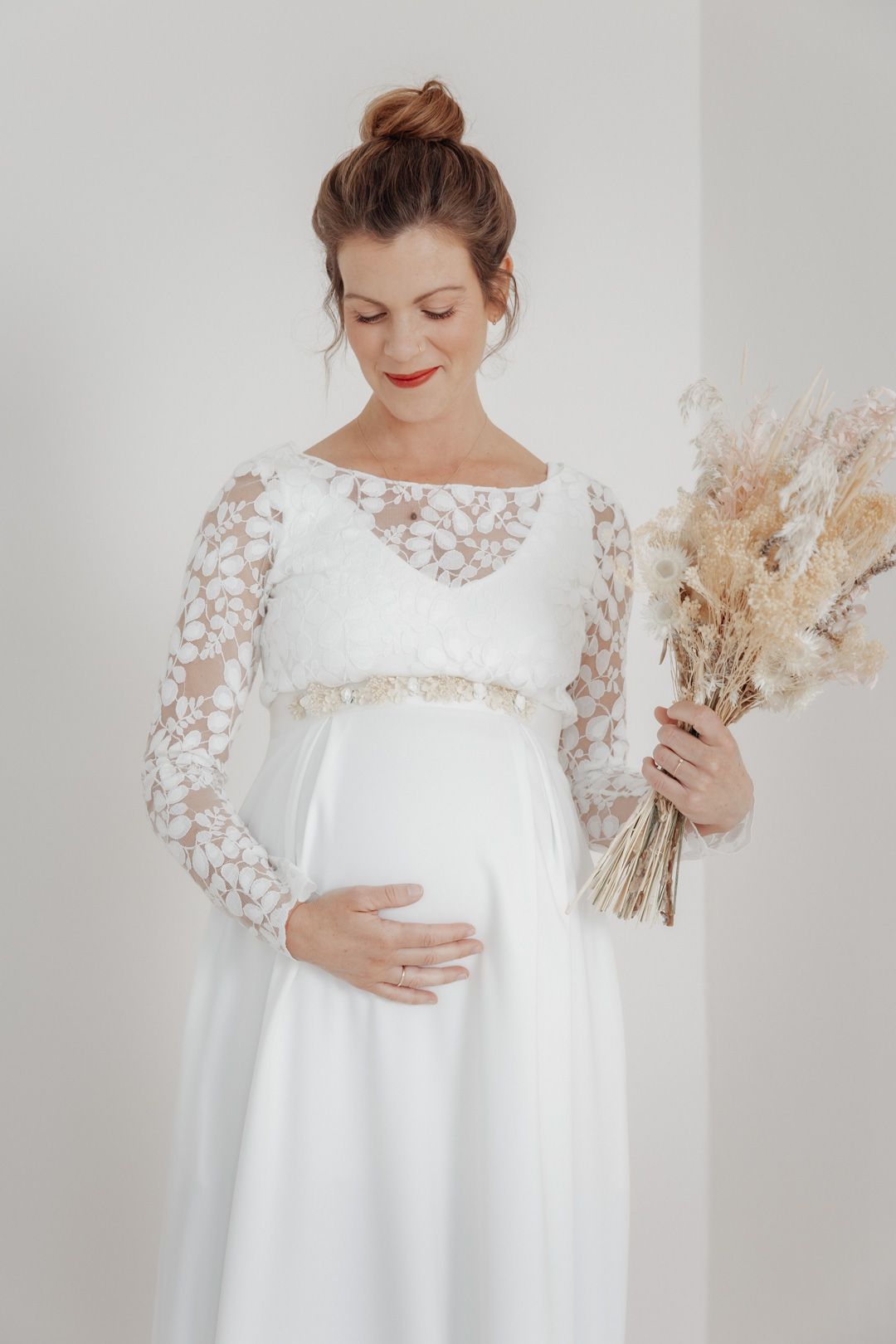 Unsere Röcke, Kleider, Hosen und Jumpsuits werden bewusst etwas länger angefertigt, sodass sie auch von höher gewachsenen Bräuten getragen werden können.